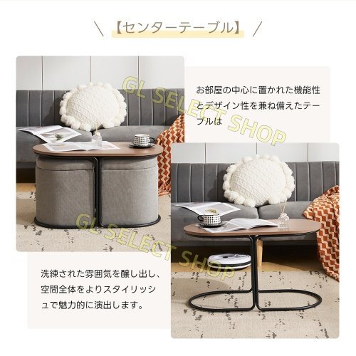 【新作登場】テーブル センターテーブル スツール2個付き 収納付き 北欧風 ソファテーブル ローテーブル モダン 組立不要【ナチュラル】