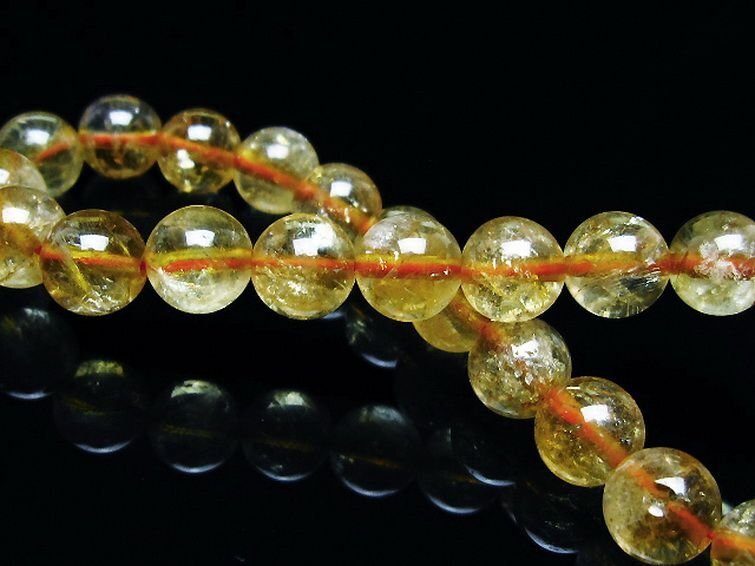 | ■商品名: 虹入りシトリンブレスレット ■商品ID: T366-13283 ■商品重量:約 15.4g ■商品サイズ:内周約:154mm(±5mm)粒直径約:8mm(±0.5mm) 【シトリン(黄水晶)】 シトリンは和名で「黄水晶(きすいしょう)」と呼ばれるように、水晶に鉄イオンが混入し、放射線による結晶格子欠陥によって黄色に変色したものです。 シトリンは黄色い色合いからヨーロッパの柑橘類シトロンが語源となり名付けられたといわれています。 一口に黄色と言っても鮮やかな黄色から温かみのあるオレンジがかったものまで様々で、シトリンの持つ色合いは人をポジティブな気持ちにさせてくれる魅力を秘めています。 シトリンは優しくもエネルギッシュなパワーを持つことから古来より「太陽を象徴する石」といわれ、幸福と繁栄をもたらすとされてきました。 また、黄色や金色をしたパワーストーンは金運や財運を高める効果があるとされ、シトリンは金運向上に効果を発揮するパワーストーンの代表格としても知られ人気を博しています。 シトリンは金運と仕事運の向上と人間関係の調和をもたらすとされていますので、人に携わる仕事で成果をもたらしたいと考えている方や職場内でのコミュニケーションを円滑にしたいと考えている方におすすめです。 また、緊張や不安感などのマイナス感情を取り除き生命力を高めるともされているので、気分が落ち込みやすかったり疲労をため込んでしまっている状態の方には優しいパワーで癒しと活力を与えてくれるでしょう。 ⇒ シトリンをもっと詳しく ◆ワンポイント情報 シトリンは大昔トパーズの代用品として「シトリントパーズ」や「ゴールデントパーズ」「クォーツトパーズ」などの別称で呼ばれることが多かったようです。 「ゴールデントパーズ」と「インペリアルトパーズ(ゴールドカラーのトパーズ)」が同様の意味として使われている場合がありますが、基本的には「ゴールデントパーズ」はシトリン、「インペリアルトパーズ」はトパーズの仲間になります。名称がややこしいですが間違えないように注意しましょう。 |