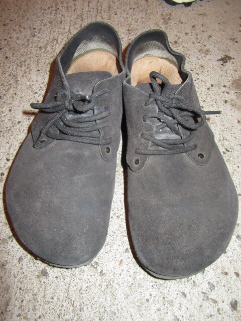 ビルケンシュトック モンタナに似てますがモデル名忘れました。購入時はいていたので ソールのヘリとかかとぶぶんのスエードが白っぽくなっています。ほかは問題ないかとおもいます。