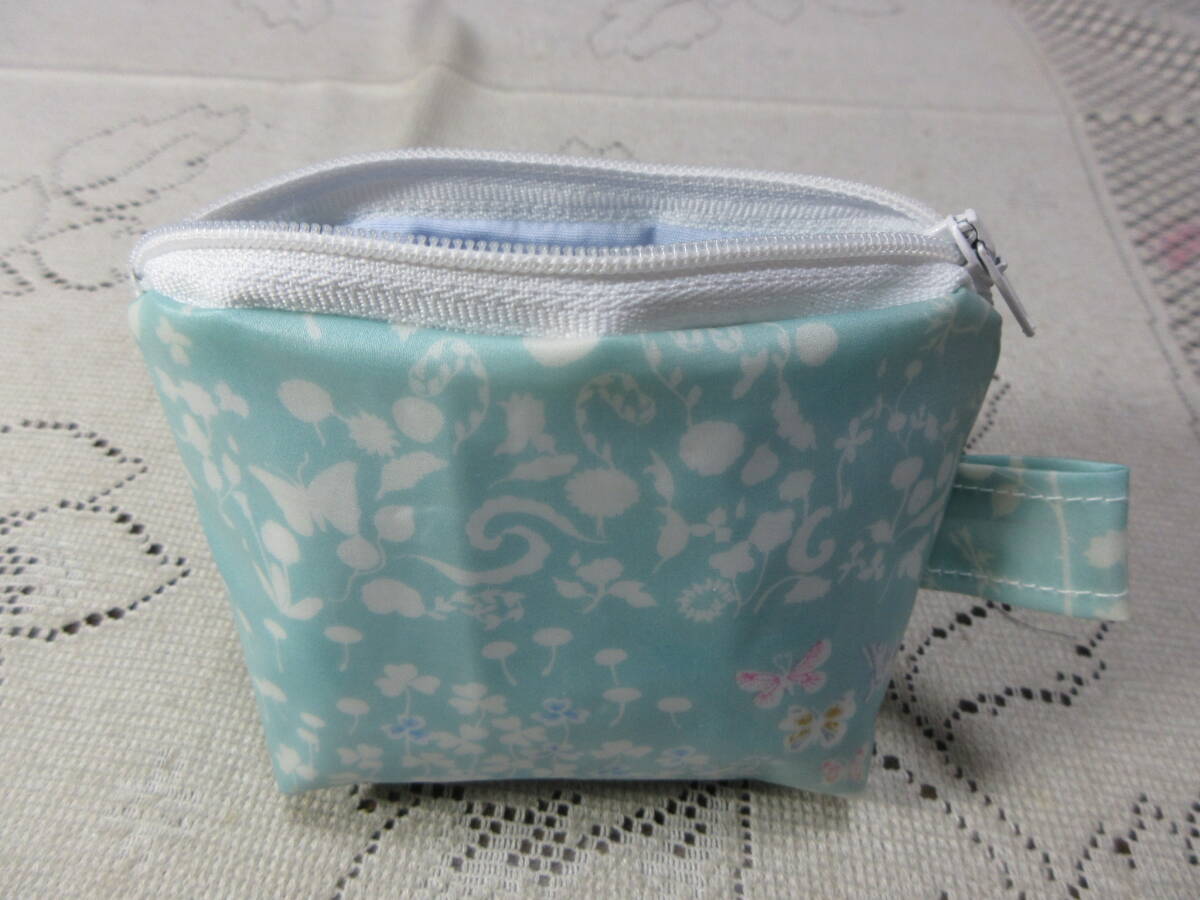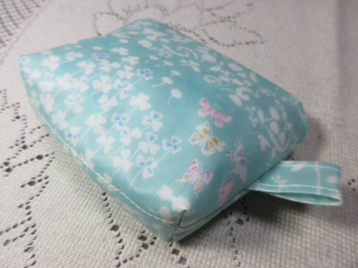 ハンドメイド リバティラミネーヨミニポーチ⑫水色  11-16