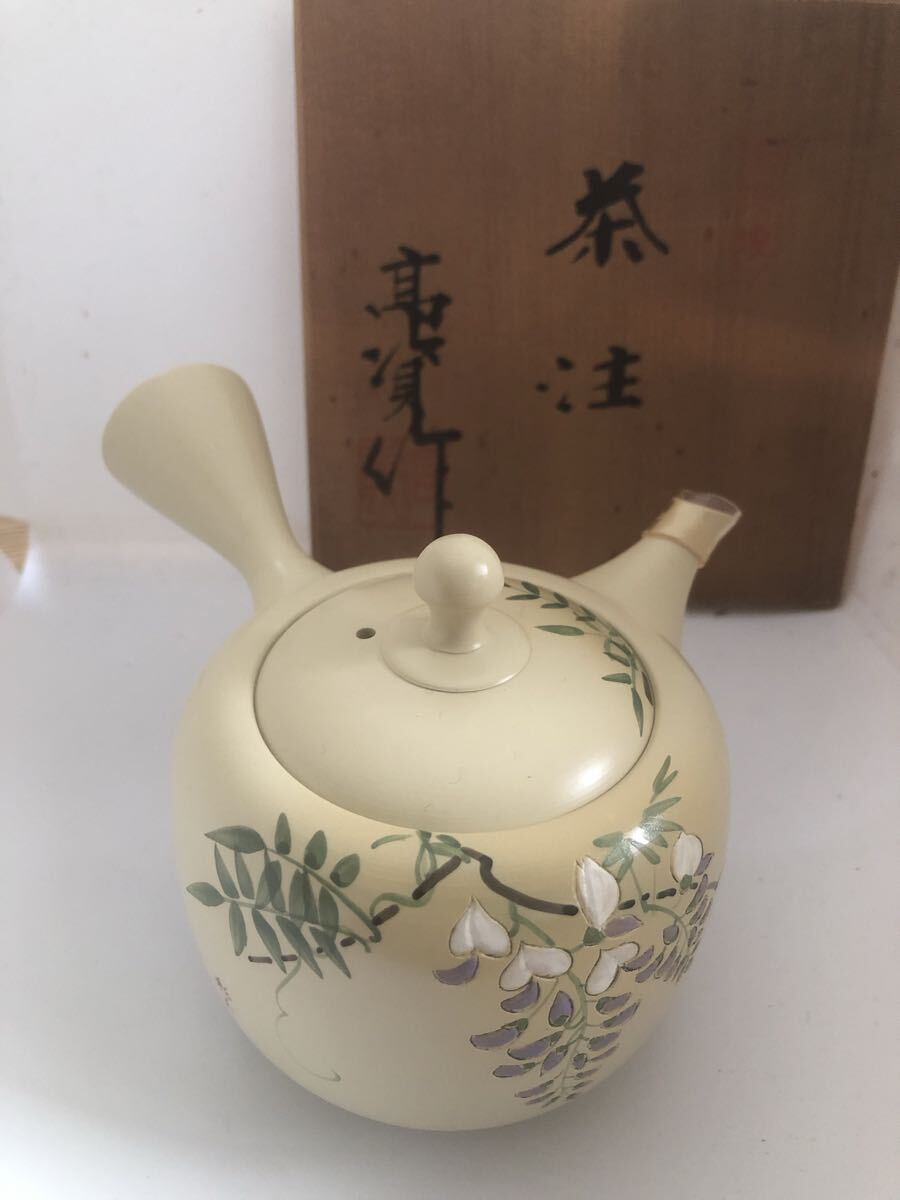 常滑焼 高資 茶注 急須 彩玉 藤の花 茶器 煎茶道具