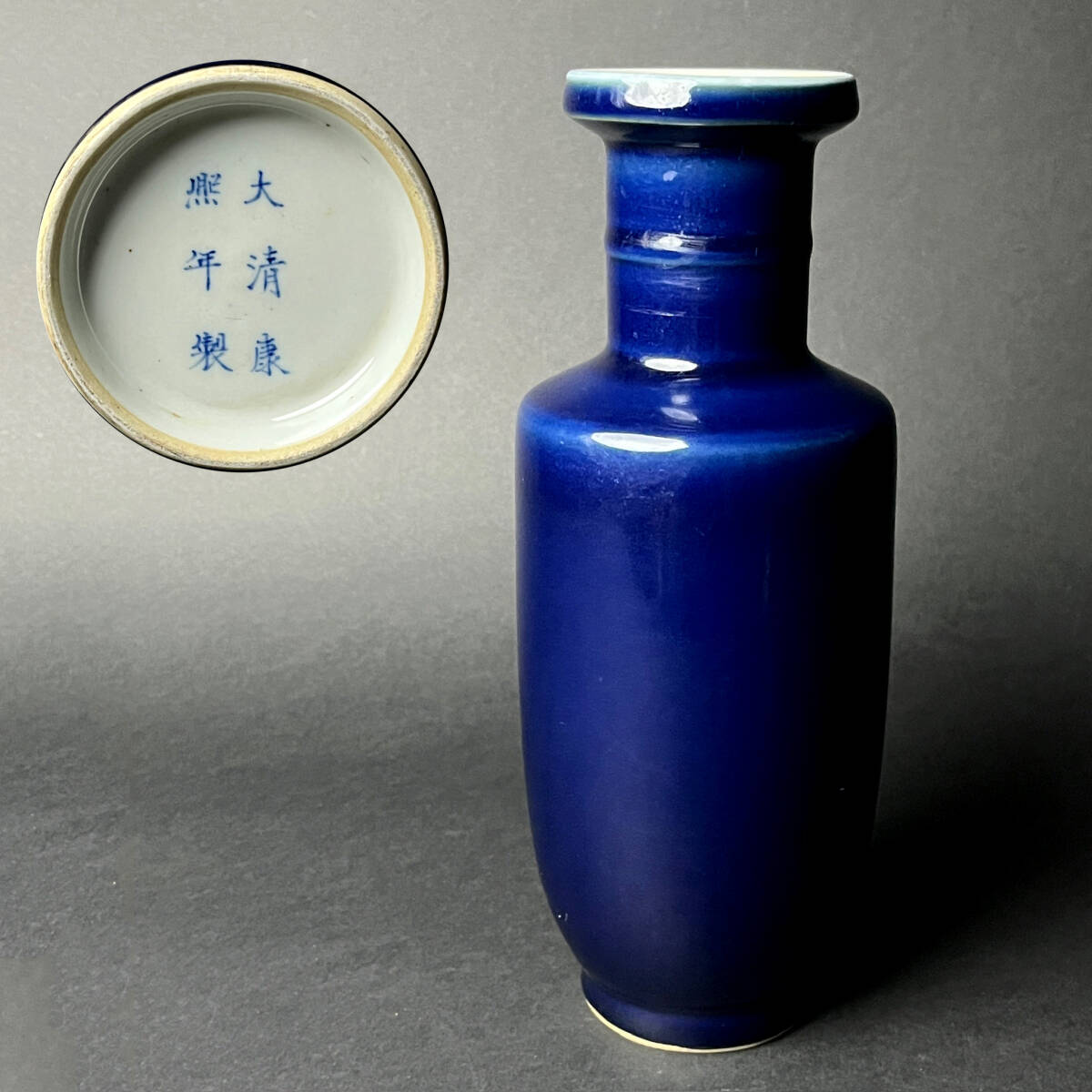 唐物 瑠璃釉棒槌瓶 大清康煕年製 款 中国美術 古玩 B9-32