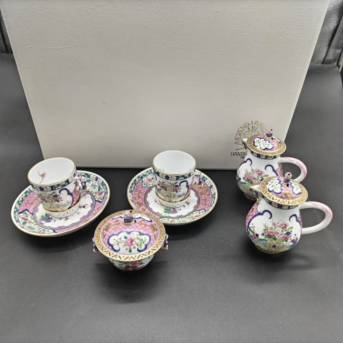 →【美品/希少】ヘレンド HEREND 皇帝 エンペラー ティーセット カップ ソーサー シュガーポット ポット 手書き HAND PAINTED1826