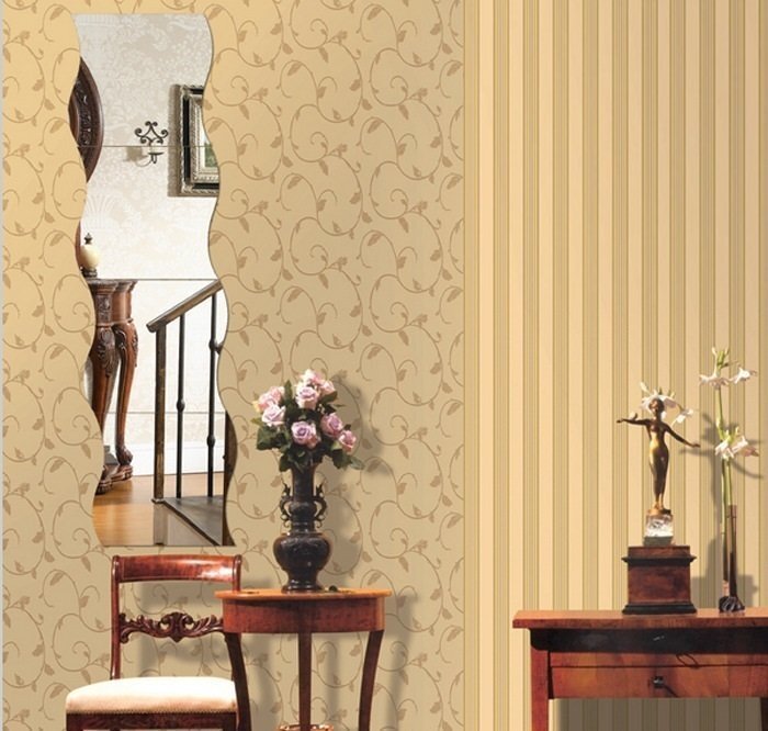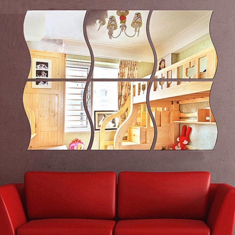 割れない鏡 ウェーブ×スクエア ウォールデコレーションミラーステッカー 【シルバー 40㎝】 鏡 シール インテリア 海外モダン