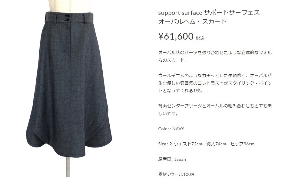 ★定価61,600円 / support surface サポートサーフェス スカート / デニム風生地・ウール100% ★ビームスBEAMSストラスブルゴマドリガル