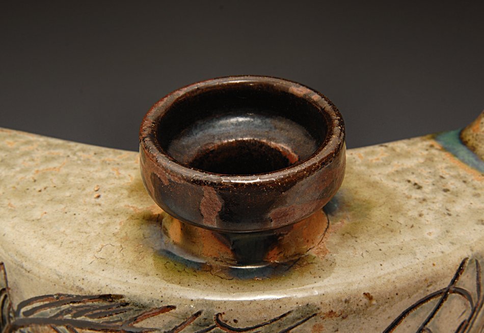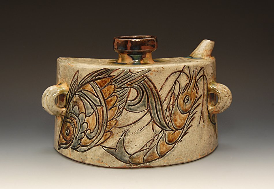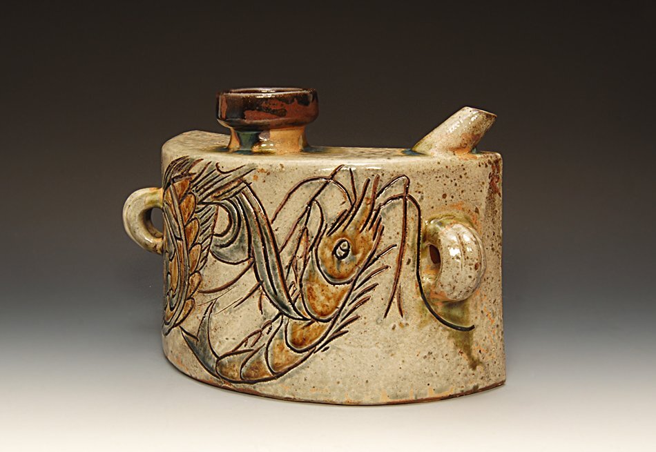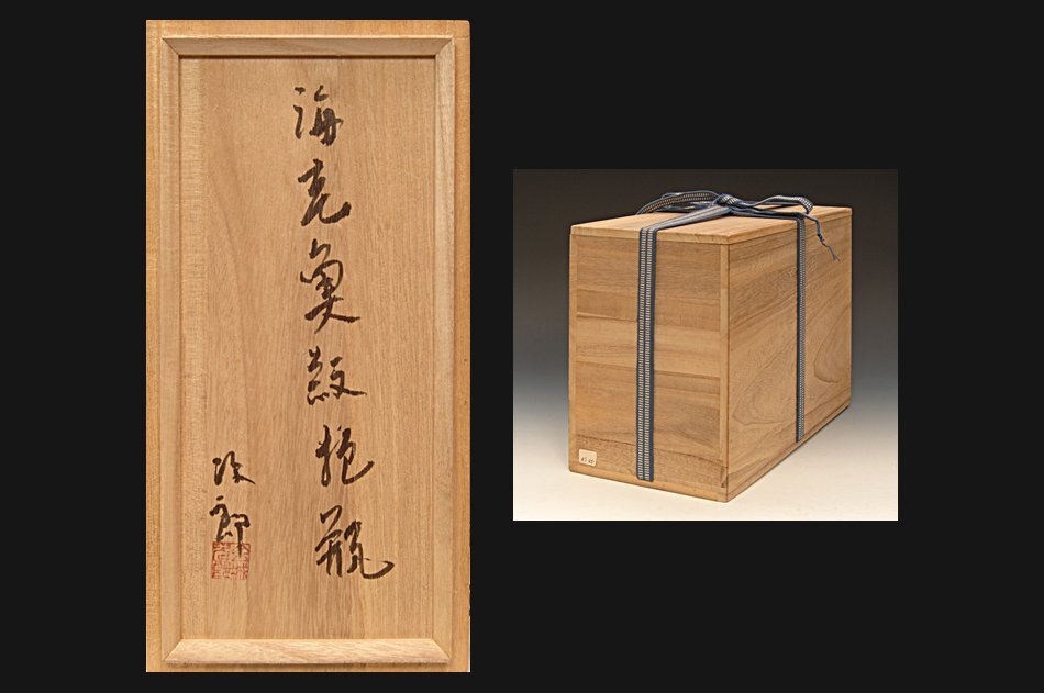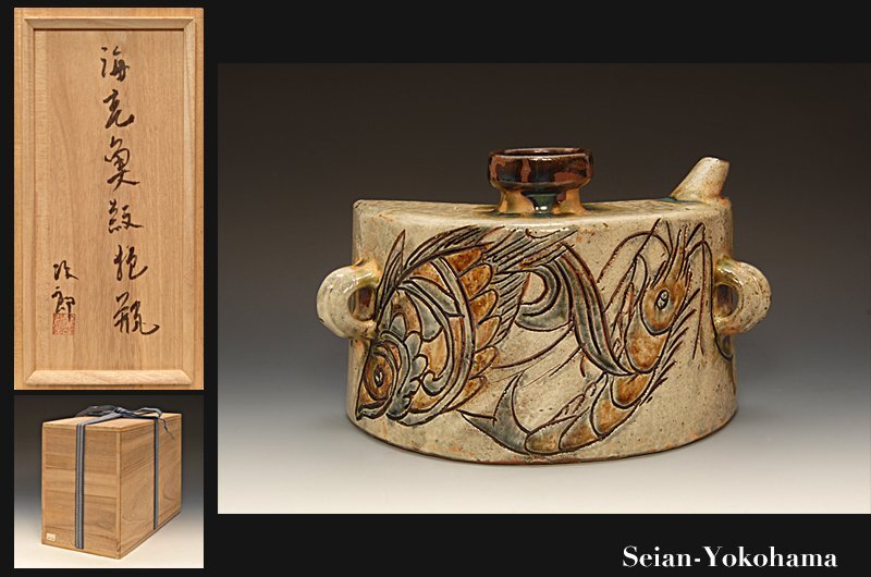 星庵厳選名品企画 人間国宝 金城次郎 海老魚紋 抱瓶 共箱