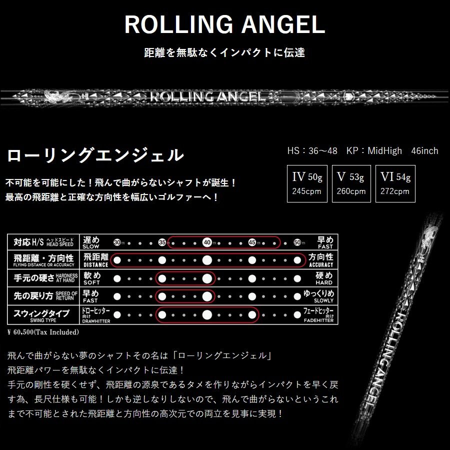 新品 クライムオブエンジェル ROLLING ANGEL ローリングエンジェル (IV) ドライバー用 46インチ カーボン シャフト単品 |