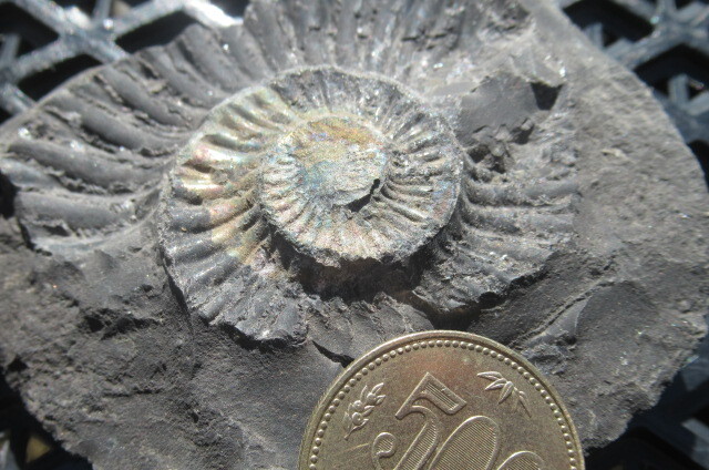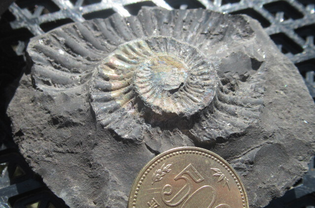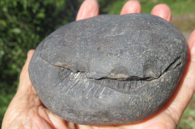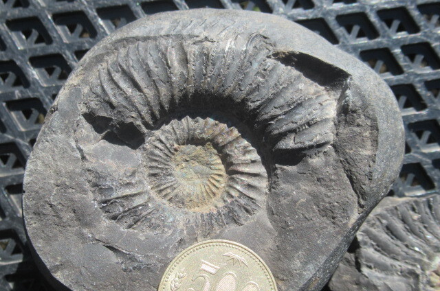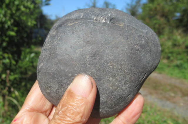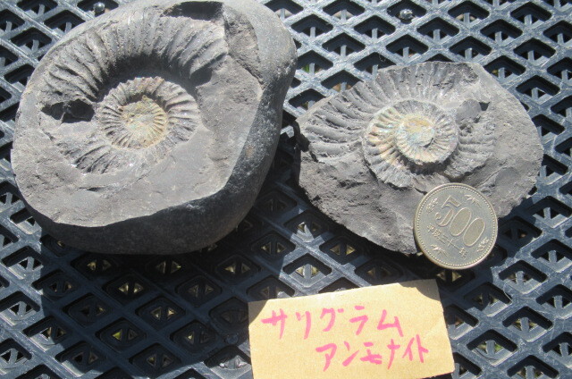 ネパールヒマラヤのダウラギリ峰の麓、カグベニ村のカリガンダギ河原の転石ノジュールに含まれるジュラ紀のアンモナイト化石で、ヒンドゥー教徒にはアンモナイト種にこだわらず「ヴィシュヌ神の聖なる石サリグラム」として尊重されます。現地を訪れてみるとヒンドゥー教だけでなくチベット仏教の寺や聖所などにこの化石が赤く荘厳され鎮座するのを見てチベット仏教でも聖石とされる事を知りました。現地から持ち出し禁止と言うことで、本品は首都カトマンズでの購入品です。本品は購入品の中でも凹凸ペアのかみ合わせが良く内部の黄鉄鉱の金属感も残っています。化石部サイズ62/53mm、母岩サイズ90/81mm。全重量560g。送料無料。