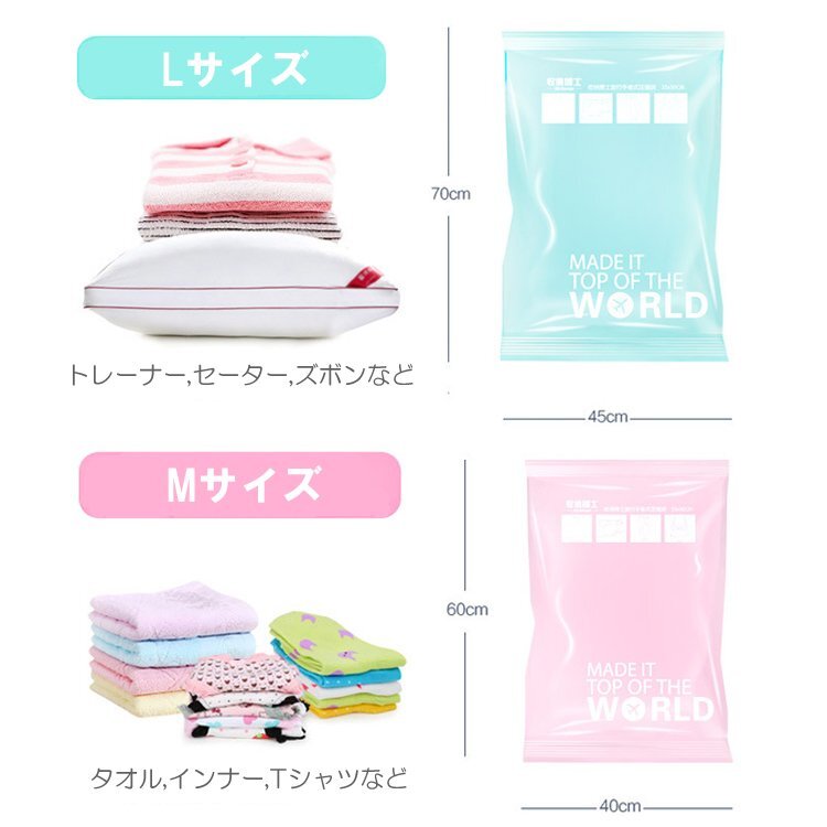 セット内容:旅行用圧縮袋6枚セット(Mサイズ4枚、Lサイズ2枚)