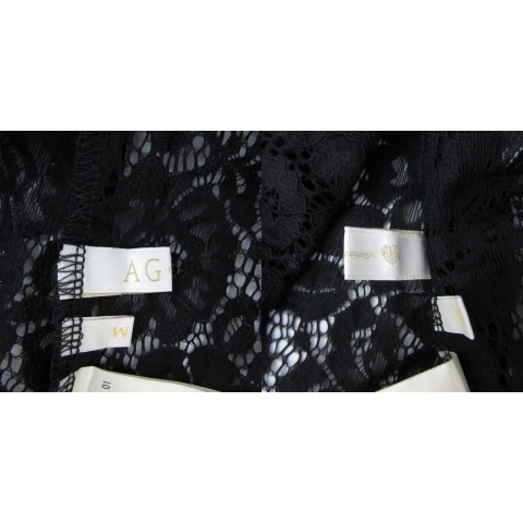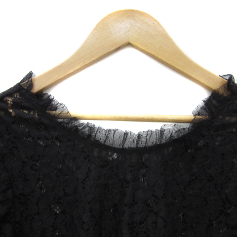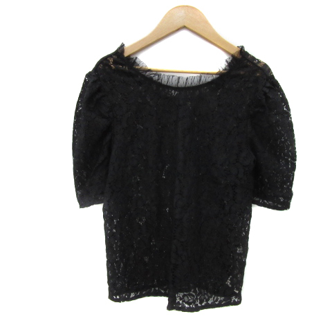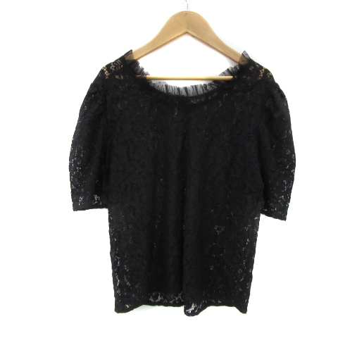 エージーバイアクアガール AG by aquagirl カットソー 半袖 ラウンドネック 総柄 総レース M 黒 ブラック /YS35 レディース