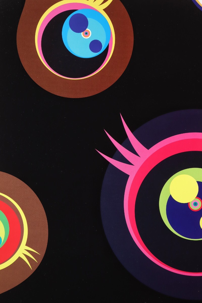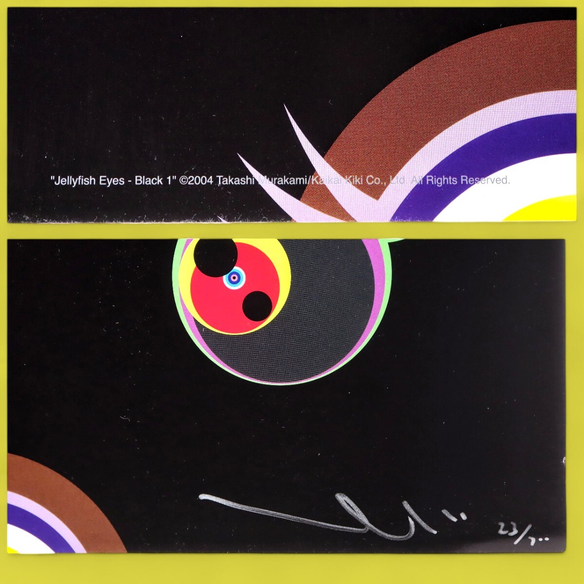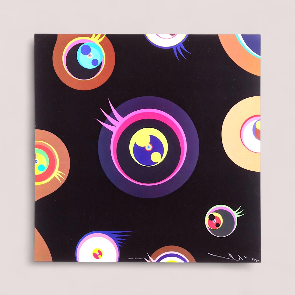 真作 村上隆 2011年オフセットリトグラフ「めめめのくらげ 黒1」画寸 50cm×50cm 黒を基調の画面にビビッドな色彩 Jellyfish Eyes 11678