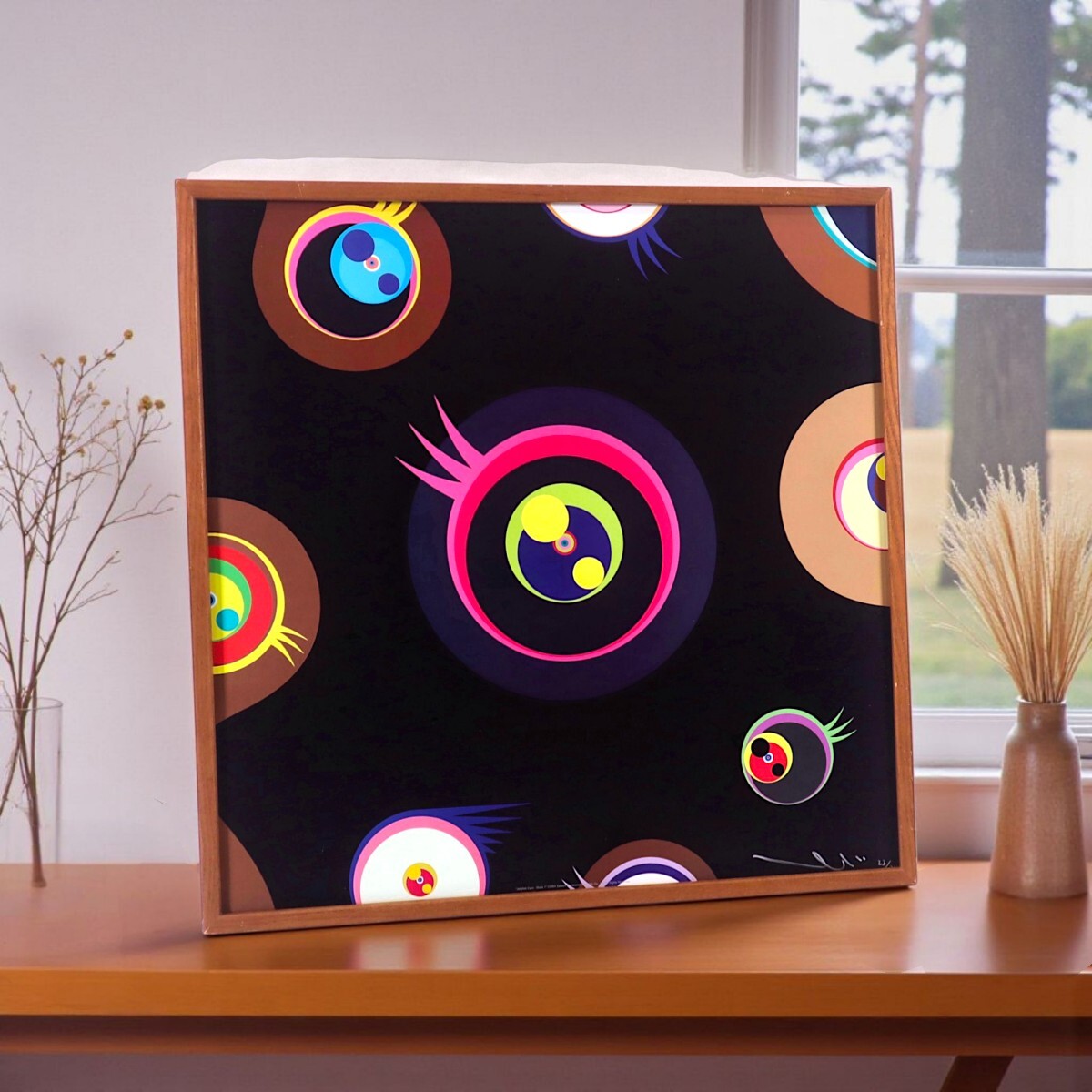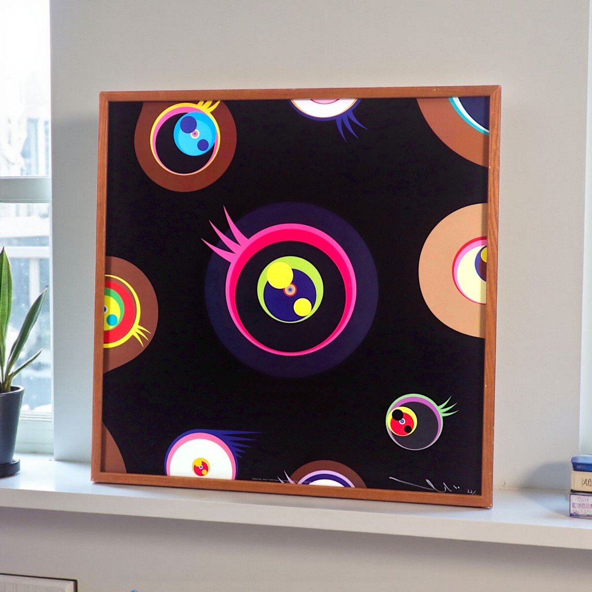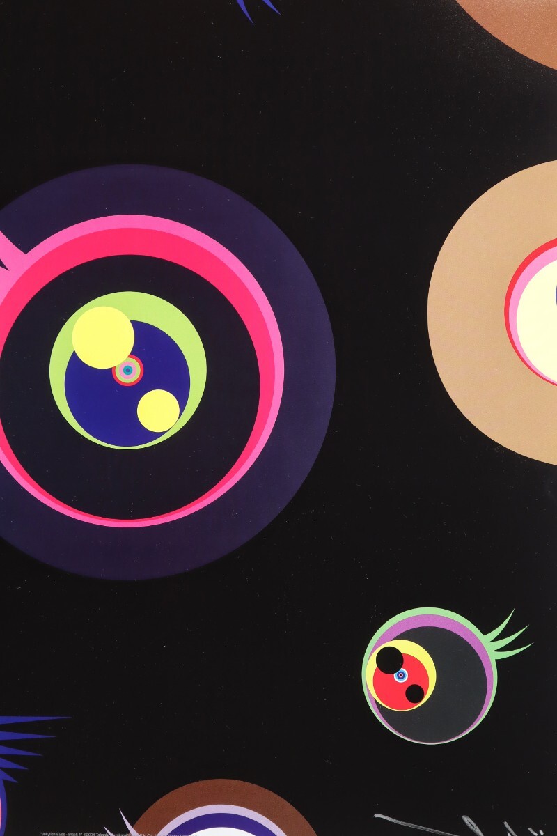真作 村上隆 2011年オフセットリトグラフ「めめめのくらげ 黒1」画寸 50cm×50cm 黒を基調の画面にビビッドな色彩 Jellyfish Eyes 11678