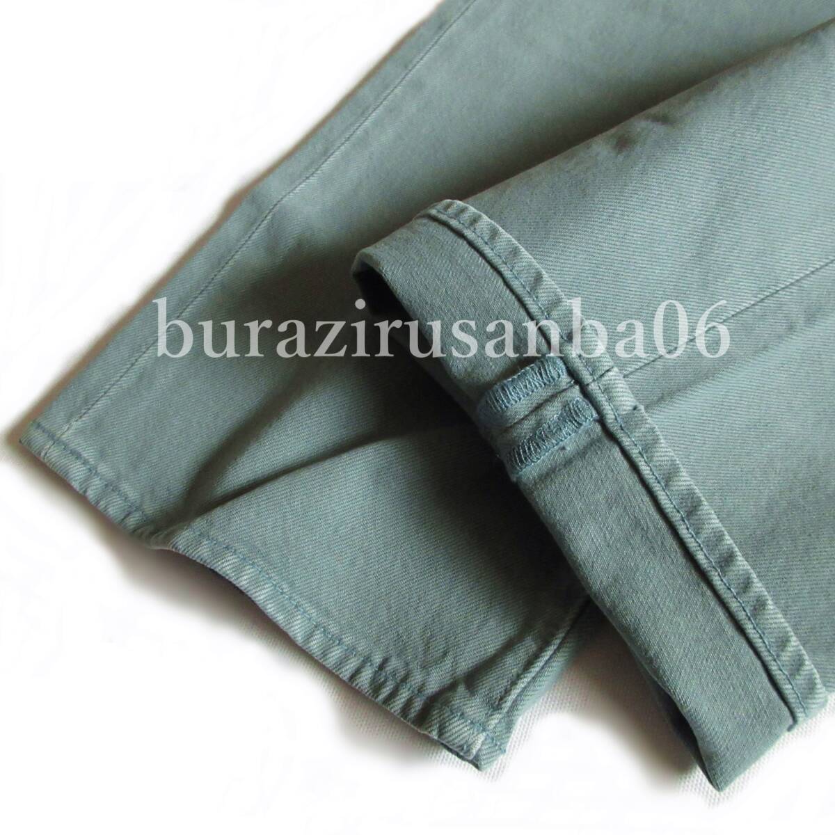 リーバイスのベーシックシルエットの基本、 定番人気の501 デニムパンツです。 股上は程よい深さで 裾に向かってすっきりとした ストレートシルエットです。 雰囲気のある くすみ系のグリーンカラー 後染めユーズド加工で独特の風合いです。 裾裏は元々シングル。 生地感はややしっかり目です。 ▼定価1万円超えのアイテムですので 少量のみの限定出品となります。 ◇赤タブは2種類ございます。LevisタブとRタブ、 どちらかはお選び頂くことはできません。 ご了承ください。 ◇リーバイ・ストラウス ジャパン(株)正規品 ◇状態:未使用 下げ札画像のみ有り 外装なし ◇素材:綿100% ★サイズ表記 W32 L32 ※ウエスト 表記より若干大きめ実寸確認 実寸は以下になります ウエスト 82cm 股上 29cm 股下 80~81cm ワタリ 30.5cm 裾幅 19.5cm ※多少の誤差はご了承ください ※商品の実寸・加工には個体差による若干の誤差がございます ●モニター環境により実際のお色と異なる場合がございます ●採寸方法は全アイテム「平置き」です。 採寸方法により、若干の誤差(伸縮による1~2センチの誤差)は あると思われますがご了承下さい。 | |||