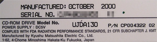 松下 UJDA130 (NotePC用・20倍速 スリムCDROMドライブ) [A]