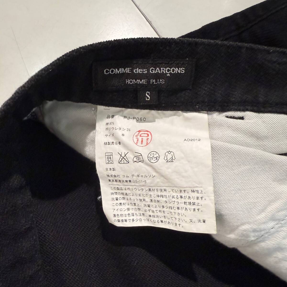 COMME des GARCONS HOMME PLUS コムデギャルソンオムプリュス 12AW Cotton Straight Pants PJ-P060 AD2012 ブラック size:S【表参道A11】