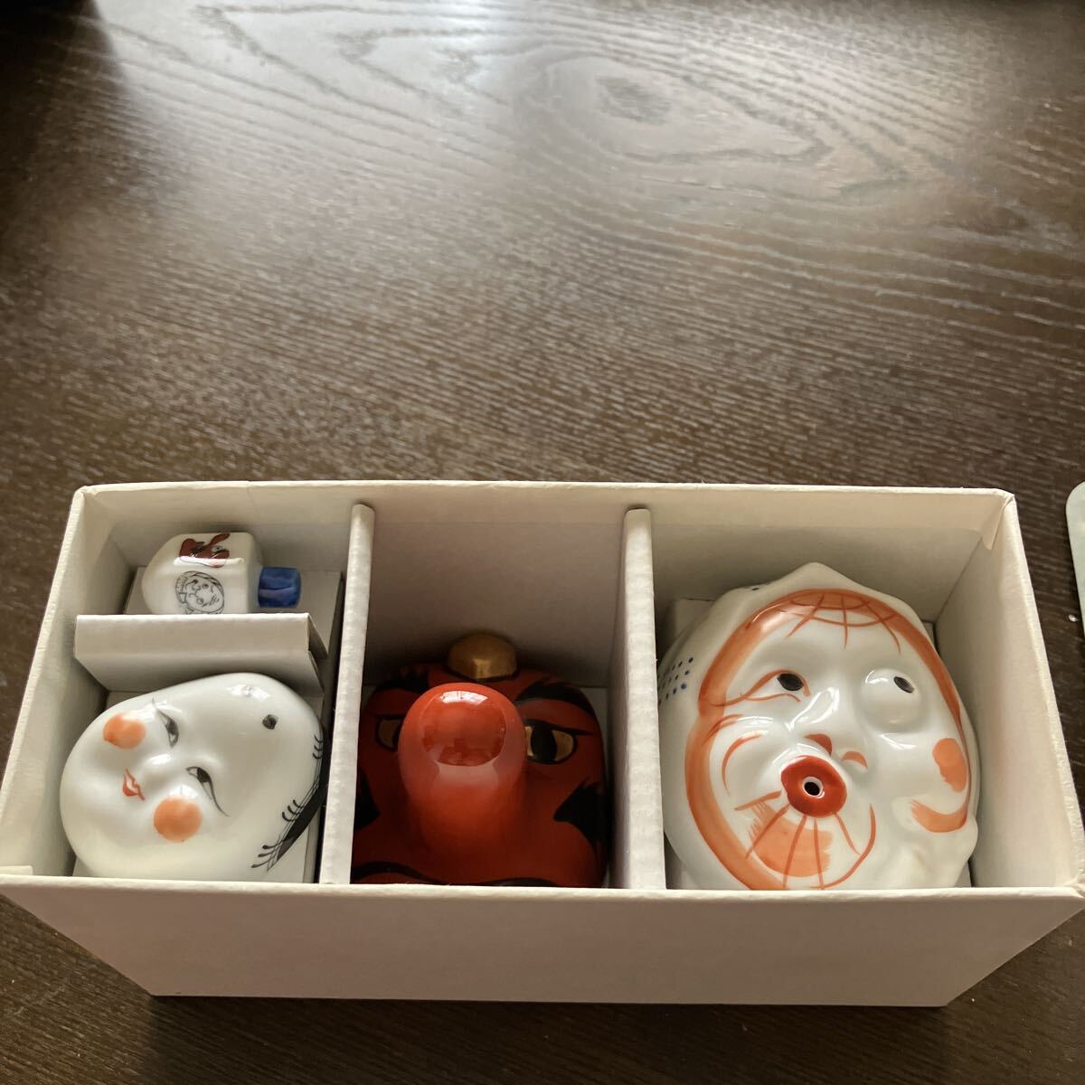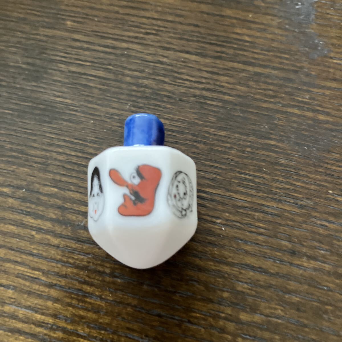 こまを回して当たった酒器でお酒を飲むという遊びですが、オカメ以外は形状上下に置けない、穴が空いてて下に置けないので飲み干すしかないという作りです。宴会グッズ、おもしろグッズです。