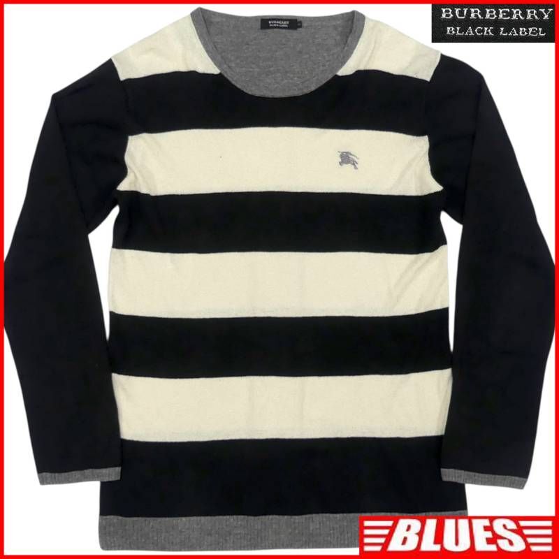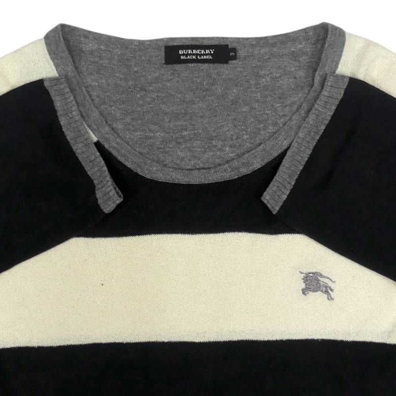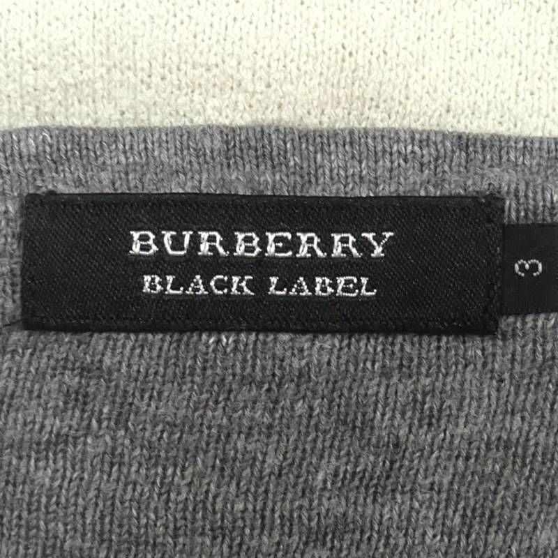 即決★BURBERRY BLACK LABEL★メンズ 廃版 Tシャツ ロンT バーバリーブラックレーベル 3 黒 白 グレー 長袖 刺繍 麻 リネン
