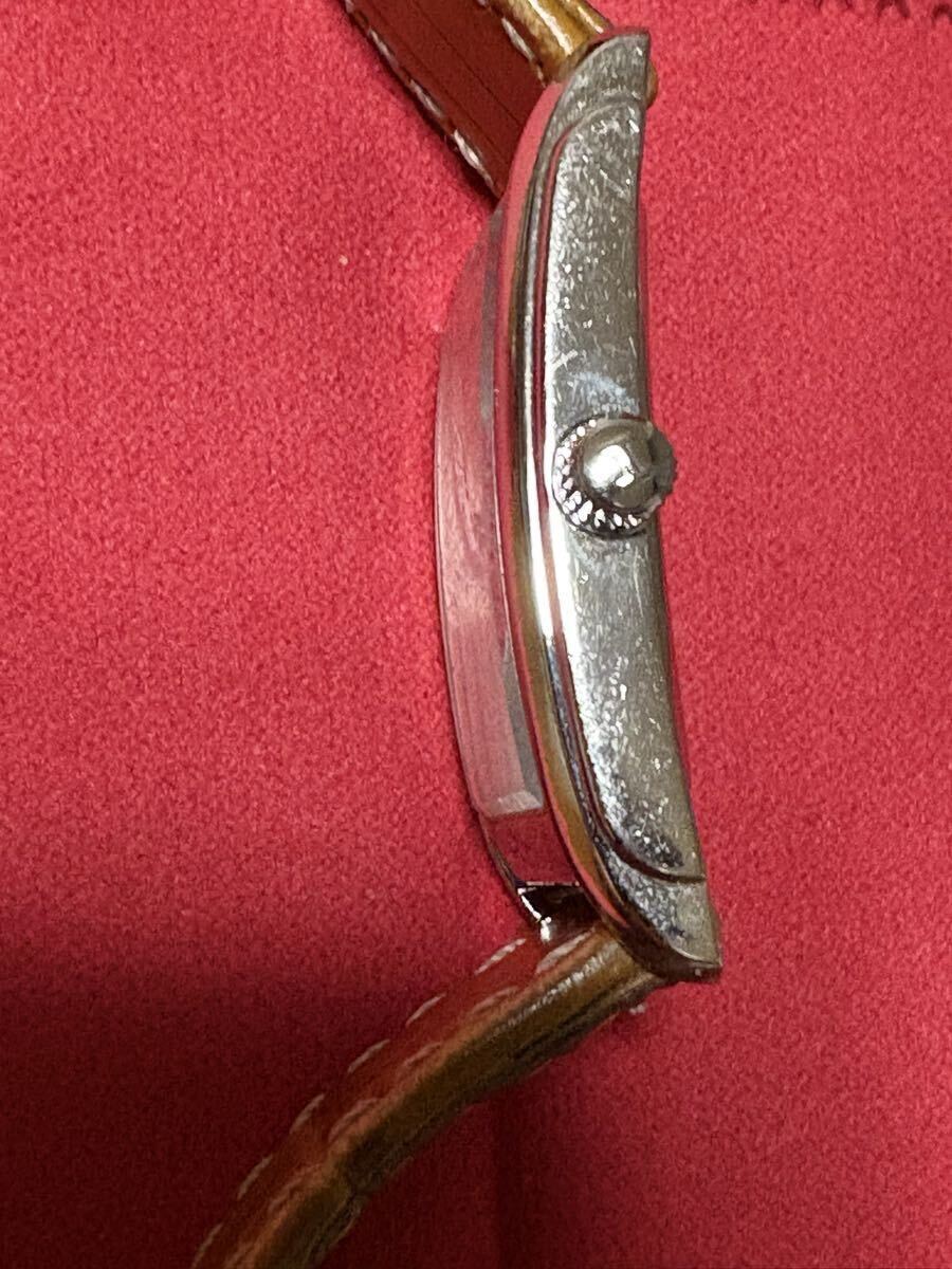 約1年前こちらで落札しました。買取店からの購入品とのことです。現在稼働中、電池交換済み、オーバーホール歴不明、付属品なし、ケースサイズ縦約39×横約23リューズ含まず、ラグ幅約18、腕周り約16〜21cm、素人採寸ですのでご参考まで。状態はベルトの汚れとフェイス全面に小傷あり、光のあたり具合ですが、通常使用では気にならないかと思います(写真1と2)。その他は良好かと思います。手に入れてからは使用していません。ベルトの汚れ取りと艶出し、ケースや尾錠は時計専用のガラスコーティング剤を塗布しています。写真でご判断下さい。個人出品、領収証不可です。包装に注意は払いますが簡易梱包です。苦情や返品はいたしかねます。どうぞよろしくお願いします。