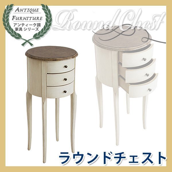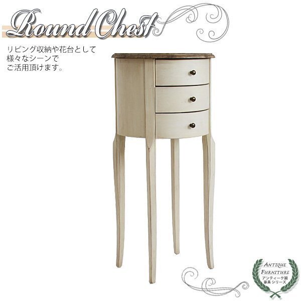 | 商品名 | アンティーク調 ラウンドチェスト W約40×D約40×H約87cm ホワイト 花台 ラウンド 3段 三段 引出し 引き出し アンティーク家具 木製 チェスト アンティーク風 アンティーク インテリア 家具 リビング収納 シャビーシック シャビー 白 antiqueh37wh |