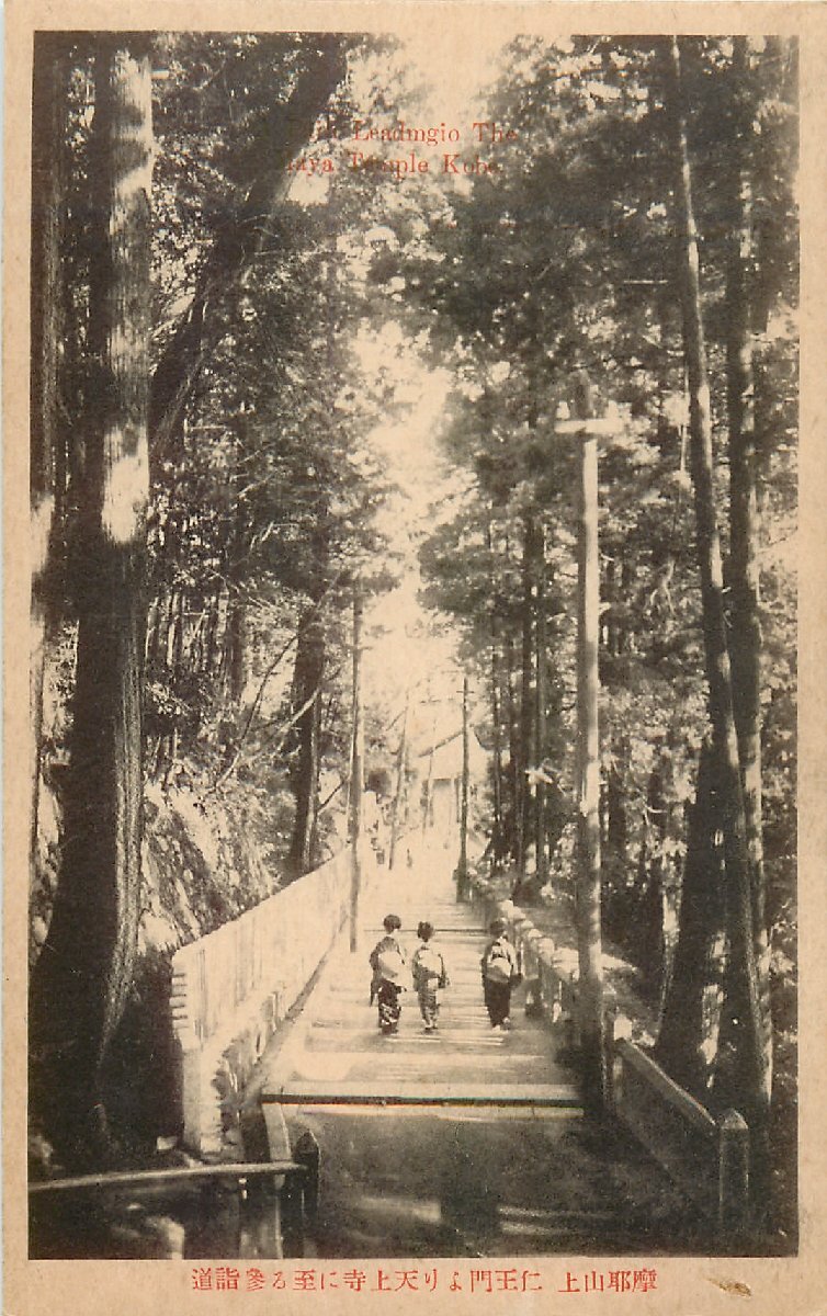 b-4024【絵葉書】◆ 摩耶山上 仁王門より天上寺に至る参詣道