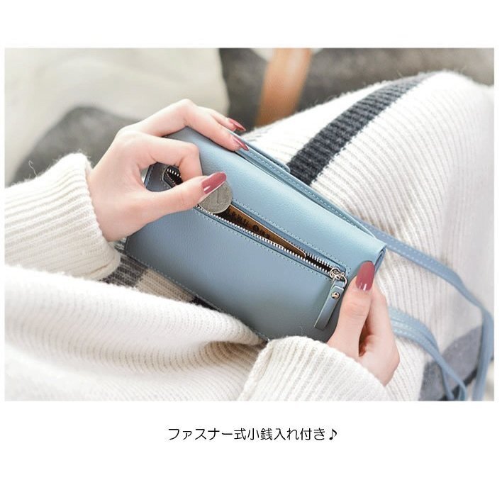 | サイズ | 縦:11cm 幅:18cm 厚み:3.5cm ショルダー最長約115cm 重さ:200g 外側ポケットサイズ:マチ約2.5cm、横約8cm、ポケット縦約15cm(上下に隙間が2cmほどあるので縦サイズはもう少し入るかと思います。) ※スマホをいれるポケットのサイズは |