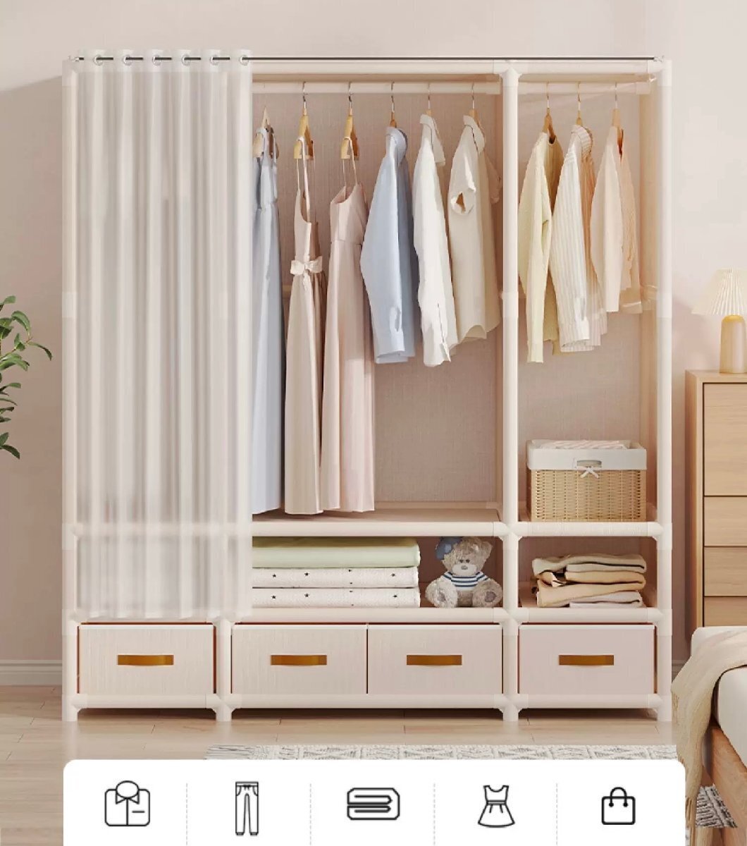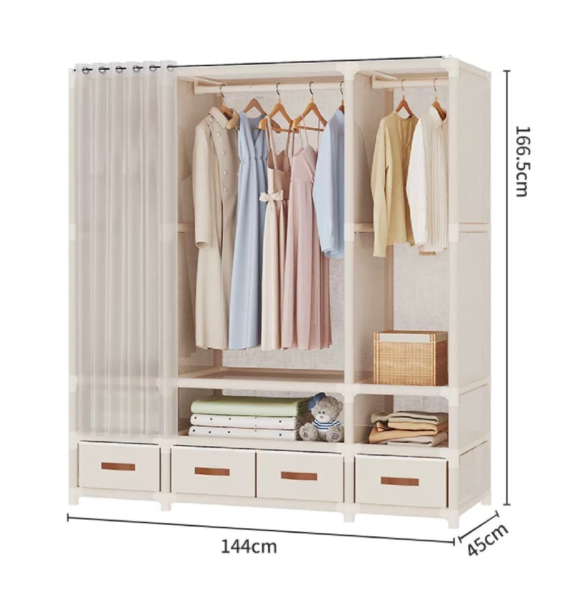 ワードローブ クローゼット衣類収納 シンプ ハンガー カバー付き 引き出し付き 組み立て式 省スペース コンパクト 洋服掛け 防水 防塵 防汚