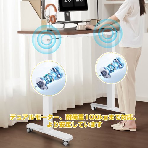 【国内発送】スタンディングデスク 昇降デスク 電動昇降式デスク デュアルモーター 高さ調節 71cm-119cm 静音 収納フック付き キャスター
