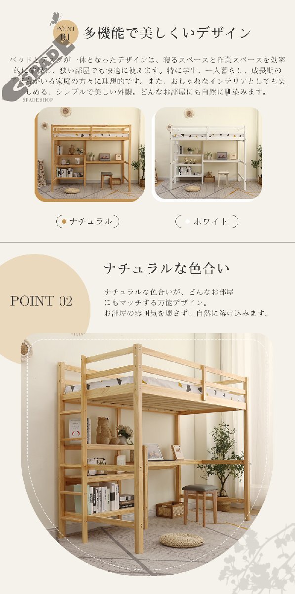 【国内発送】ロフトベッド 木製 デスク付く ハシゴ 棚 システムベッド 子供ベッド シングルウッド 階段 収納 北欧風 子供部屋 耐震