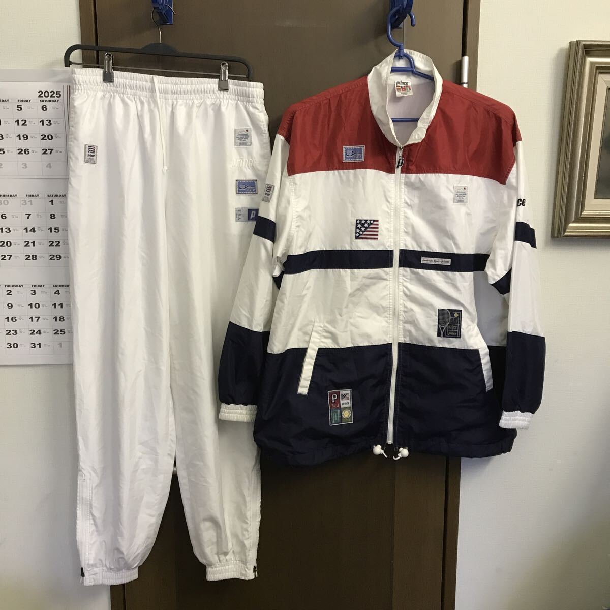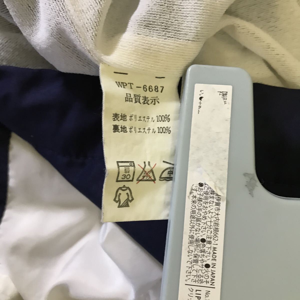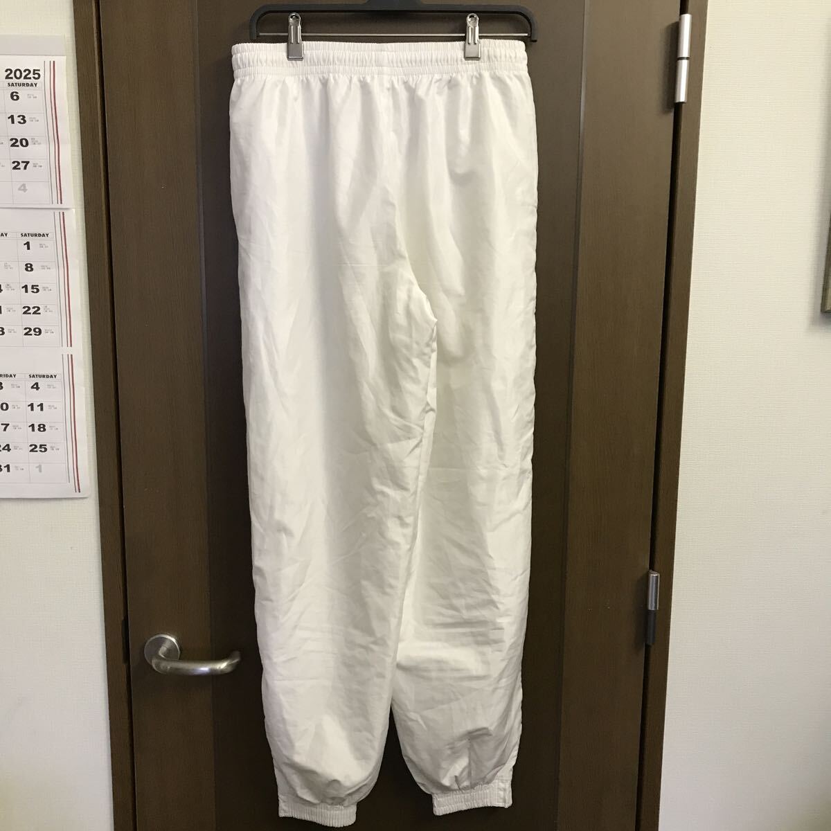 表記サイズはLL。実測値は平置きで肩幅58cm、袖丈59cm、身幅68cm、着丈79cm、ウエスト37cm、ゴムをいっぱいに伸ばすと51cm程度、股下80cm。