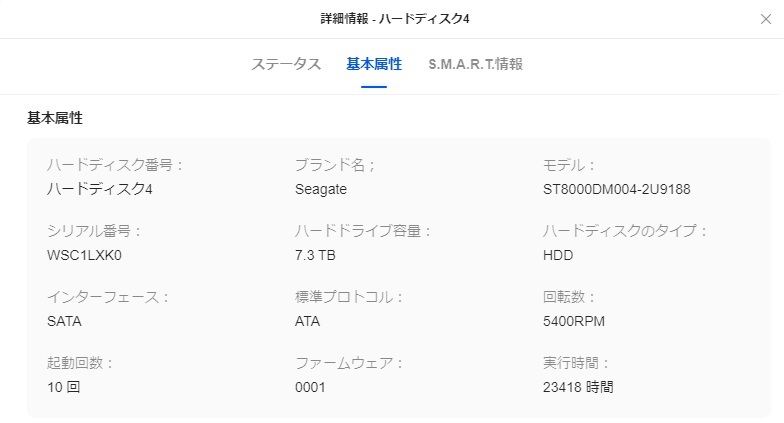 起動回数は動作チェック用のNASに入れてからの起動回数です。