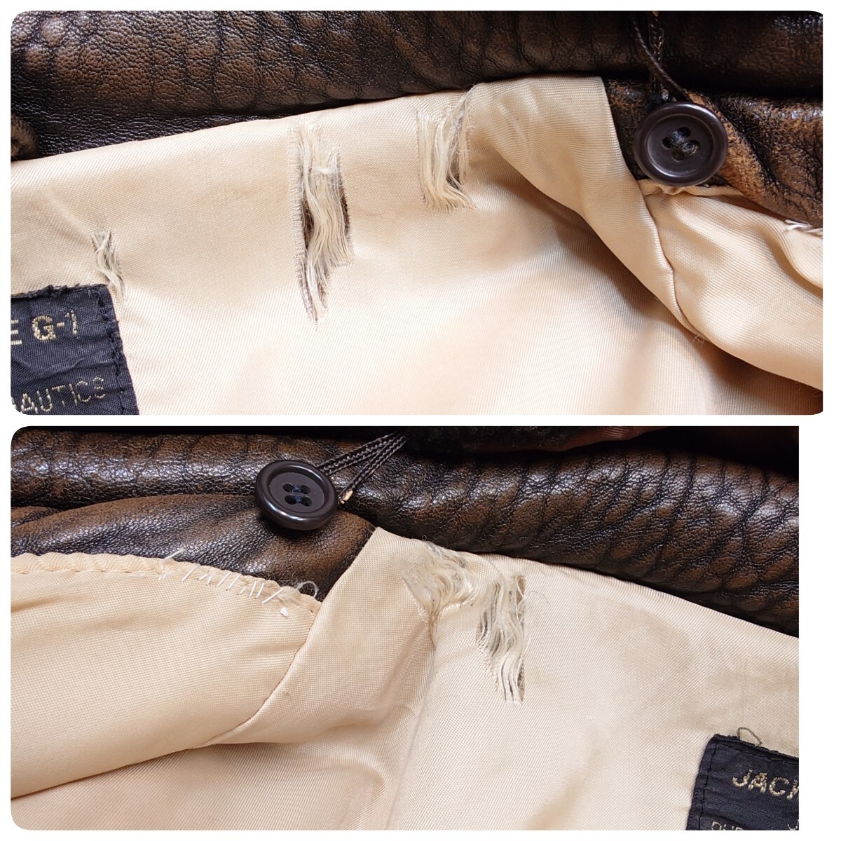ライニング部分シミ、リペア跡、ダメージあり