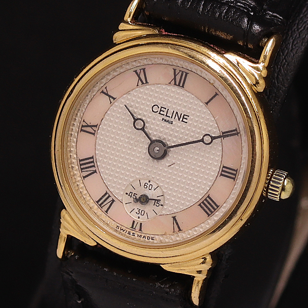 1円 稼働 セリーヌ ラウンド QZ ピンクシェル文字盤 レディース腕時計 8273100 10ANT MST