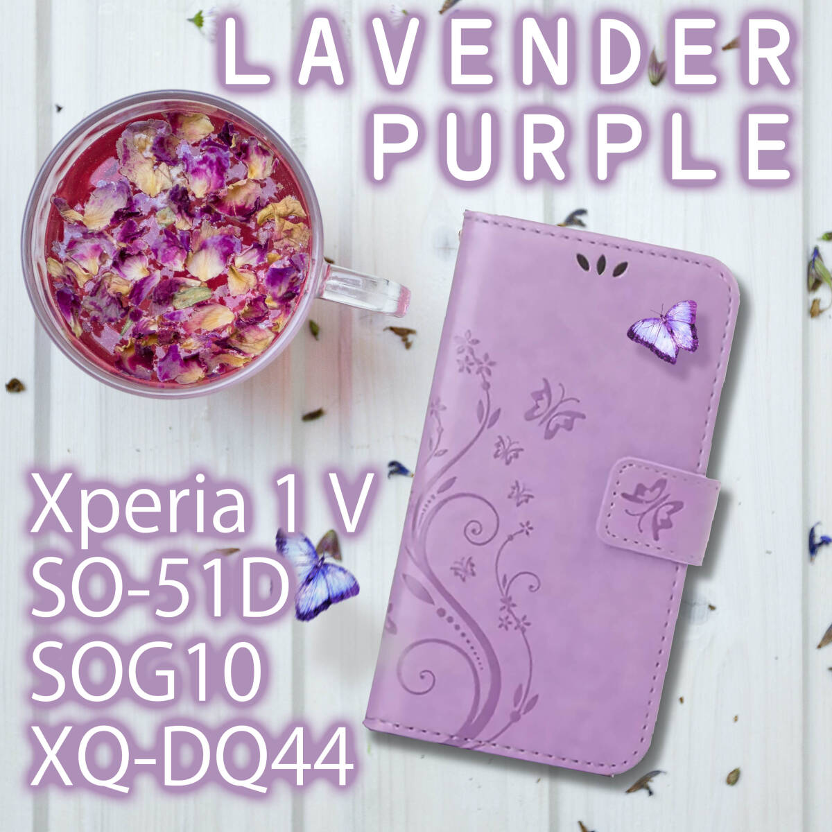 Xperia1V ケース 手帳型 かわいい 紫 Xperia 1 V カバー SO51D ケース SONY SOG10 XQDQ44 エクスペリア1V 蝶 パープル レザー 送料無料 安
