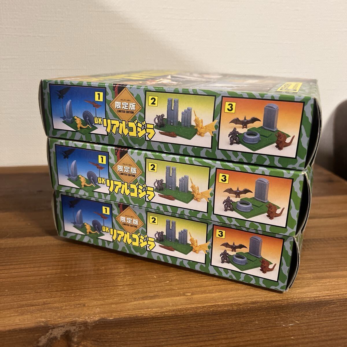 バンダイの食玩、DXリアルゴジラ全3種セットです。
