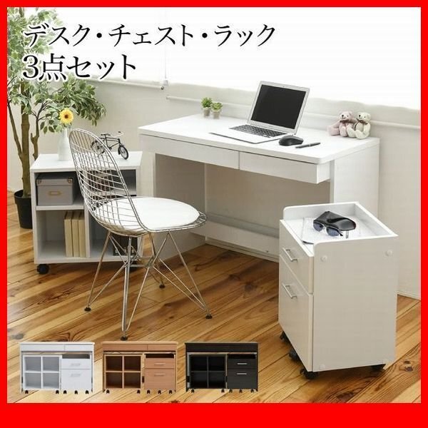 シンプルなデスクにチェストとラックが付いた3点セットアイテム。 デスクの足元には配線が収納できるスペースがあり、パソコンなどの充電コードが邪魔になりません。 幅100cm、奥行45cmのコンパクトなデザインは、 書斎でもリビングでも置き場所に困らずご使用いただけます。 |