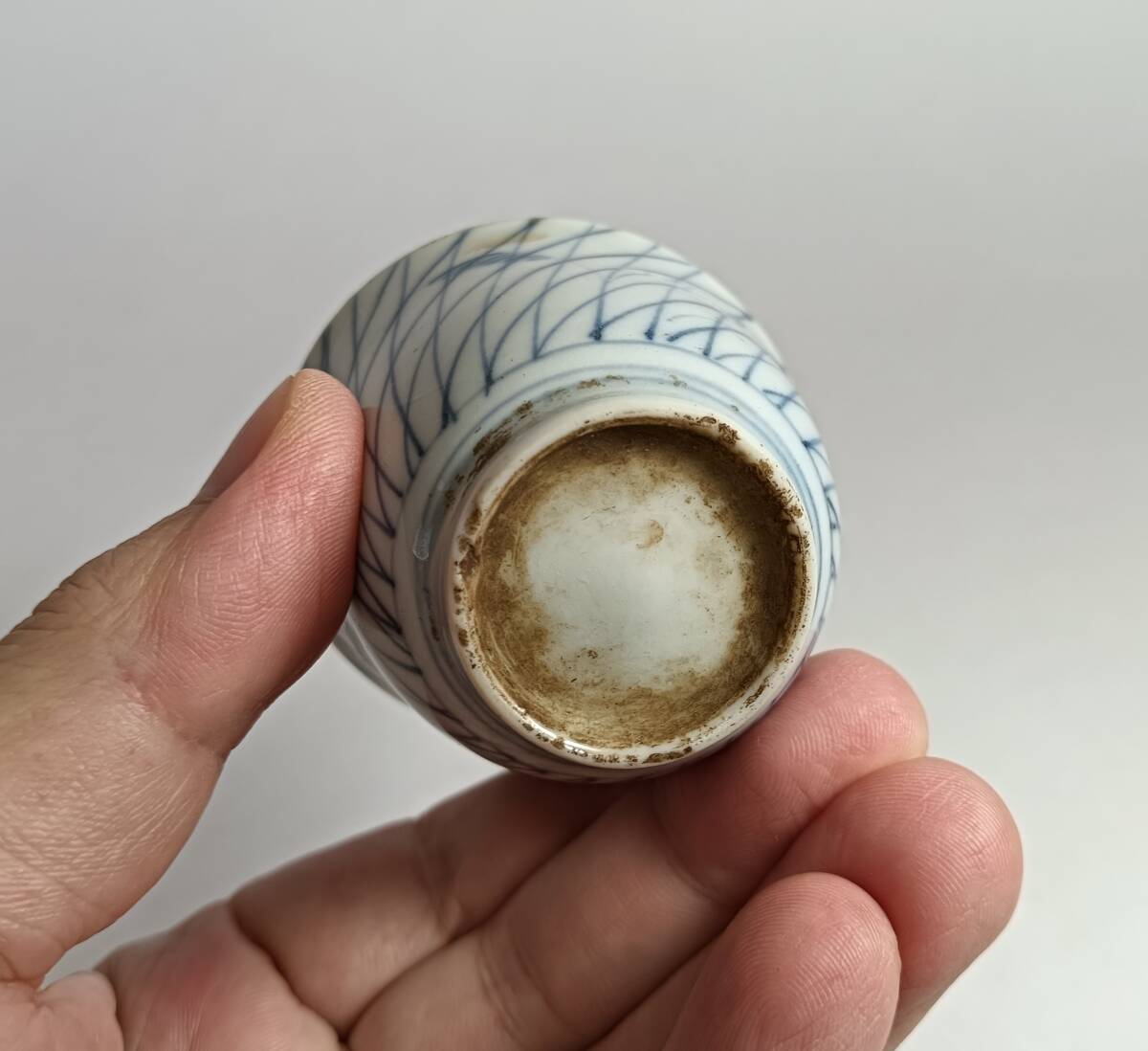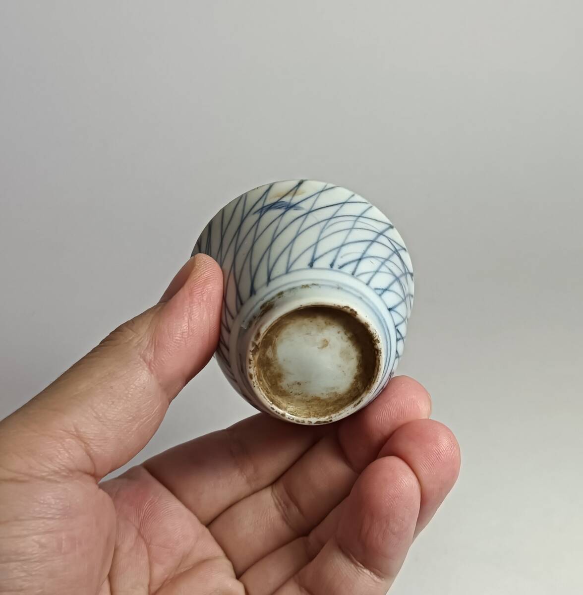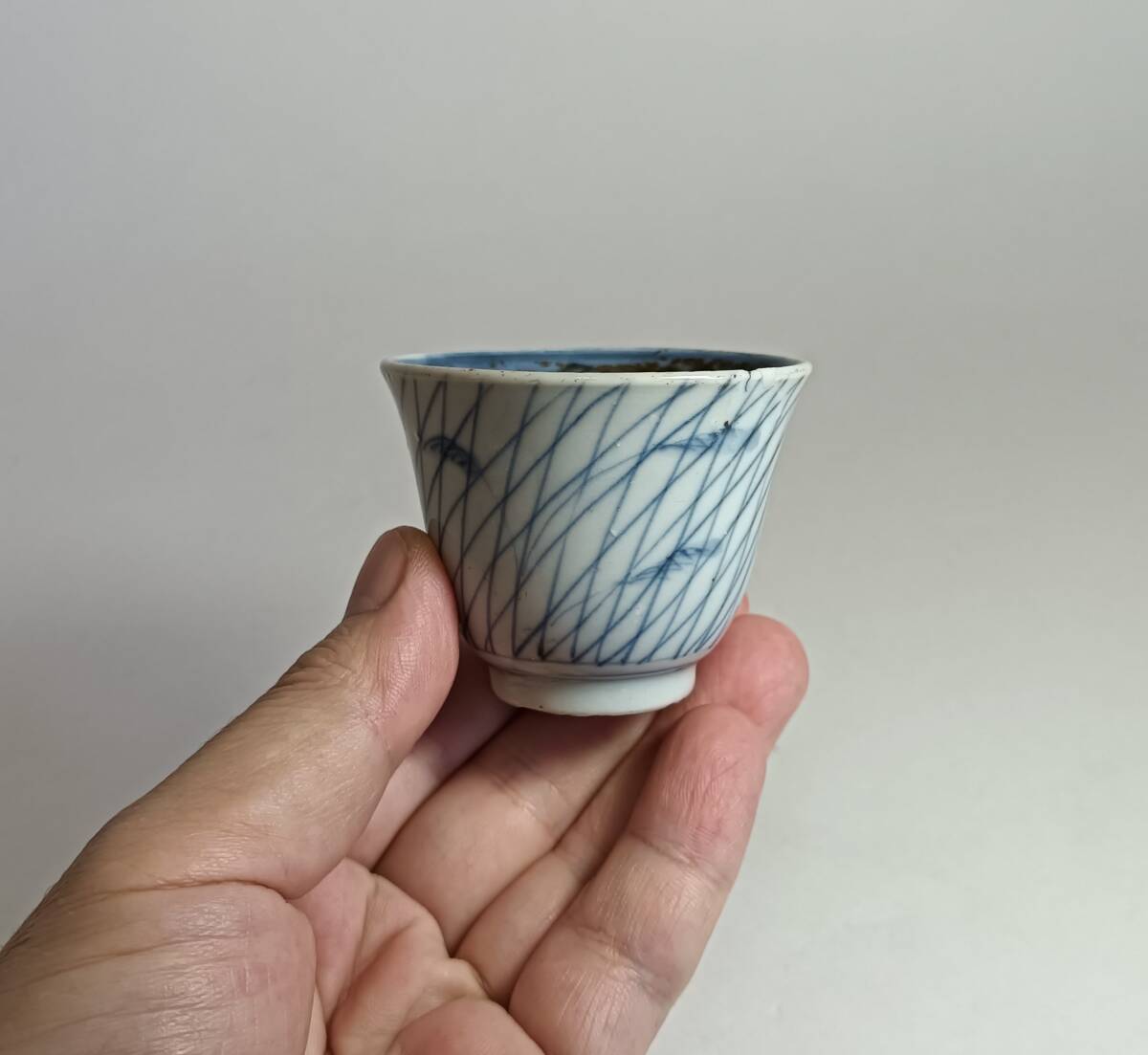 18〜19世紀の古伊万里のススキ文盃です。高台に古い小さいソゲがあります。ニュウはありません。内側の文様も洒落れています。寸法程良く、酒器になってくれそうな古伊万里です。ススキ文が秋の気配を感じさせてくれます。今時季に使うにうってつけの良い文様です。風にススキのなびく様が小さな器の外側いっぱいに巡らせてあり健気なコです。酒盃に使ってあげて下さると器も悦ぶと思います(^^)
