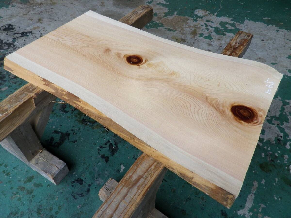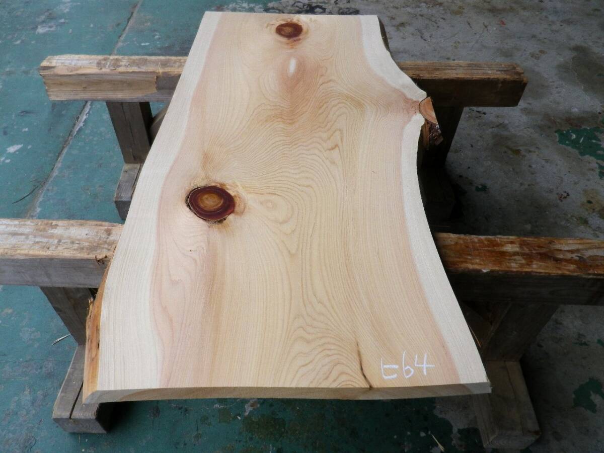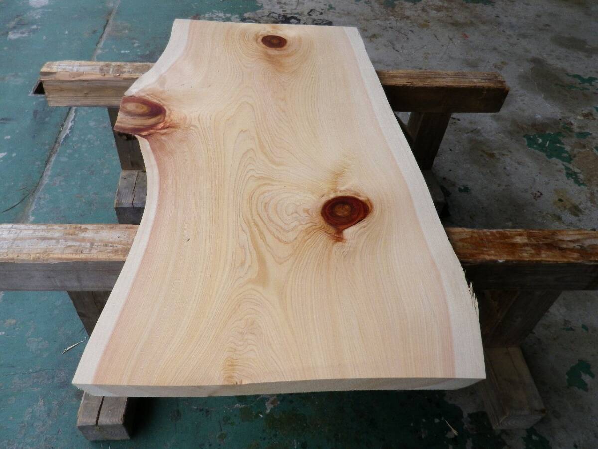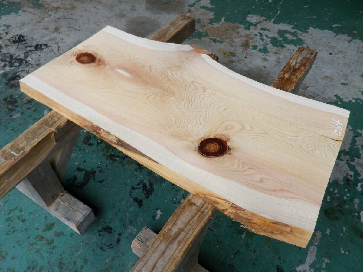 長113*幅50-59*厚3.8 桧64の木材木工材,一枚板自然木無垢材DIY テーブル天板 ヒノキ