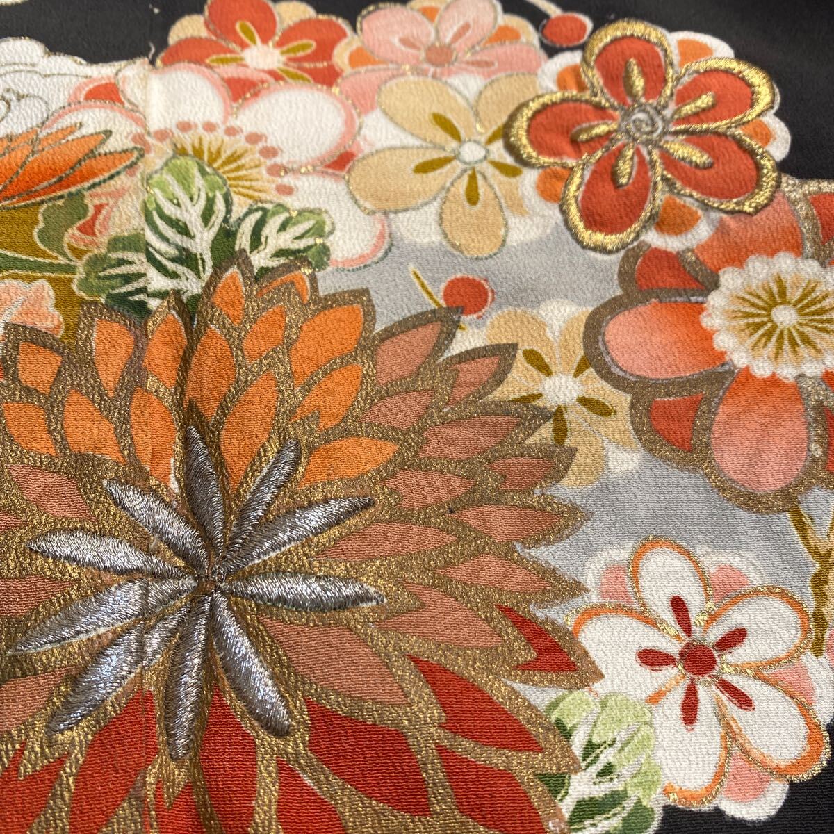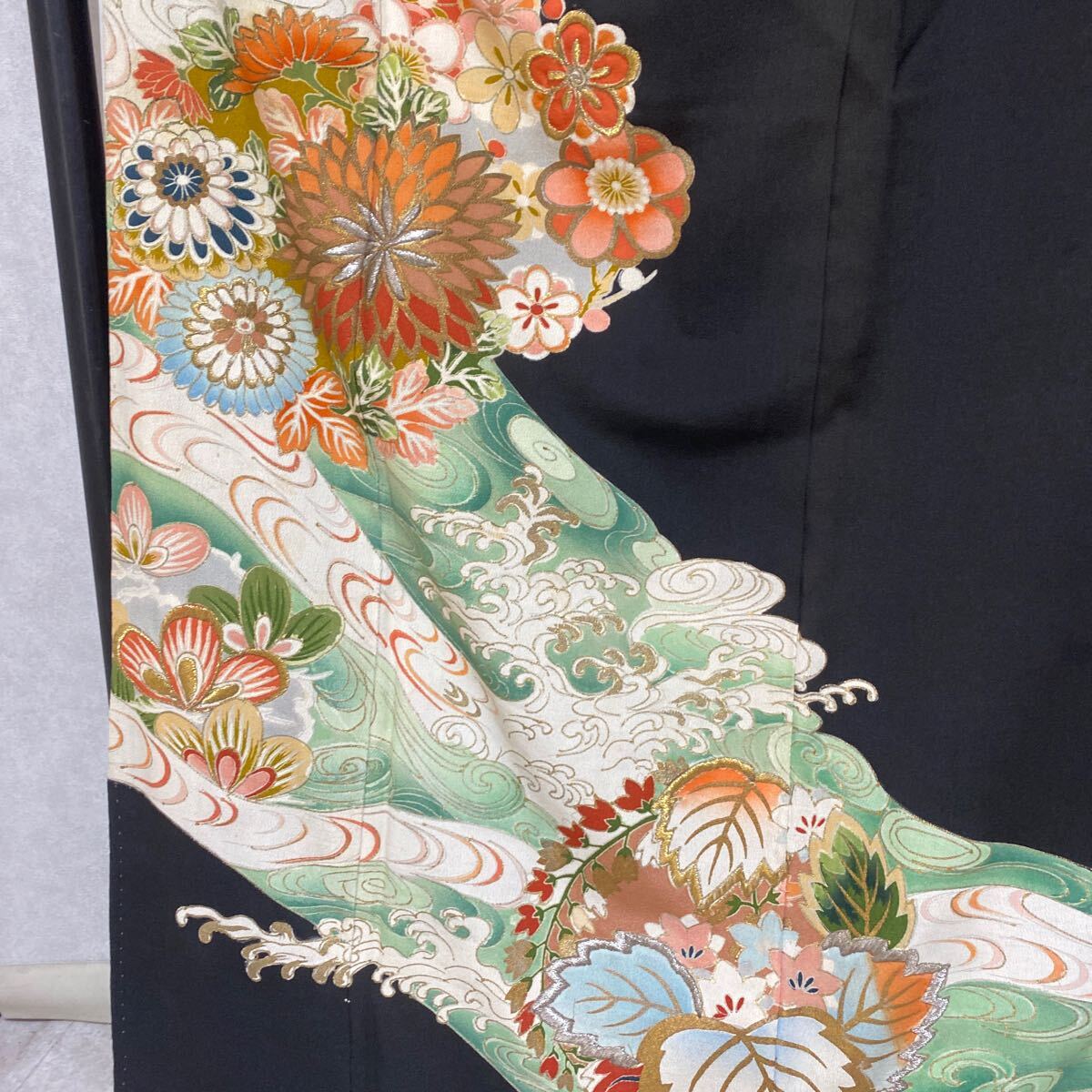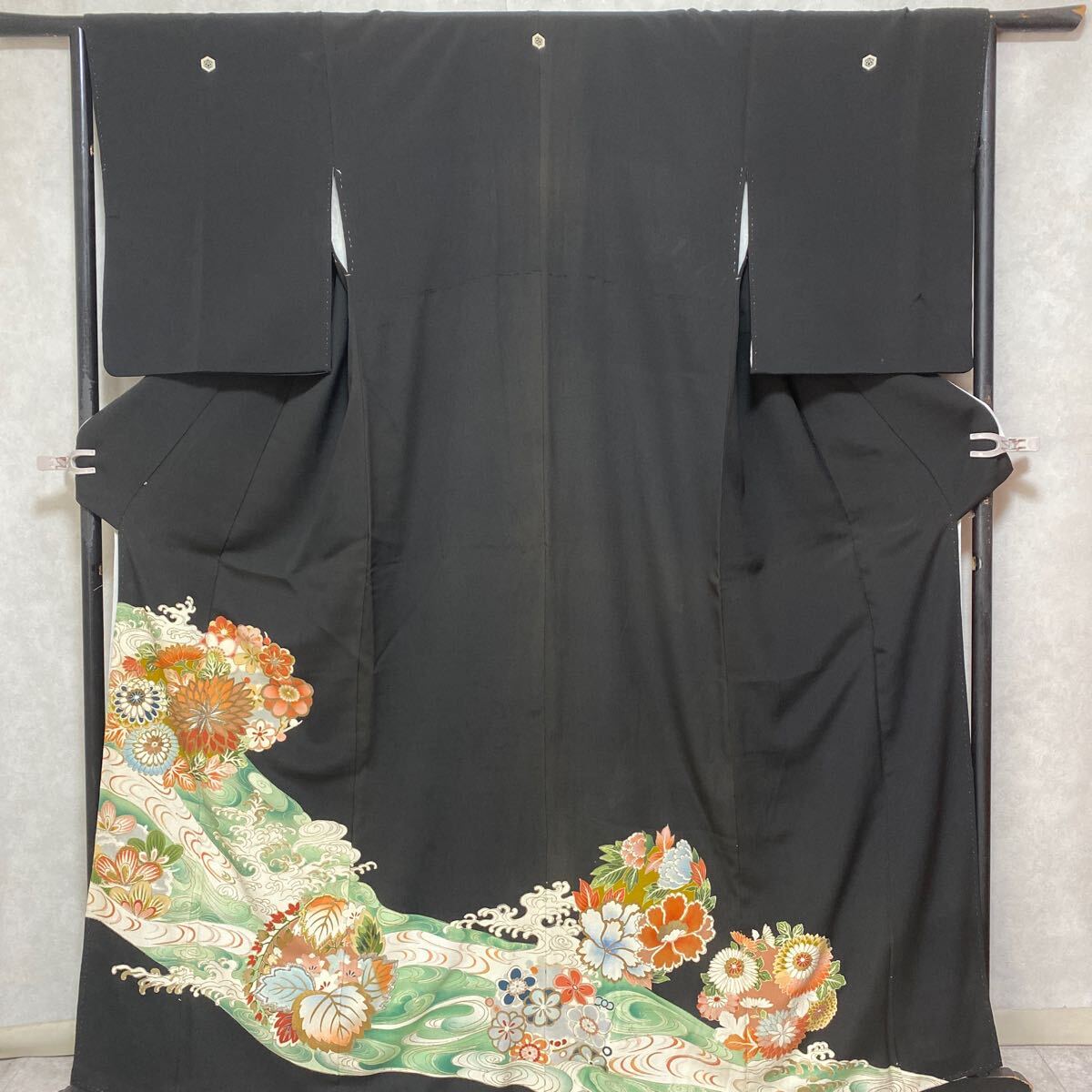 アンティーク 着物 正絹 黒留袖 金彩 金糸銀糸 刺繍 昭和レトロ 大正ロマン モダン 和洋折衷コーデ リメイク 25さ06-23s