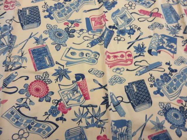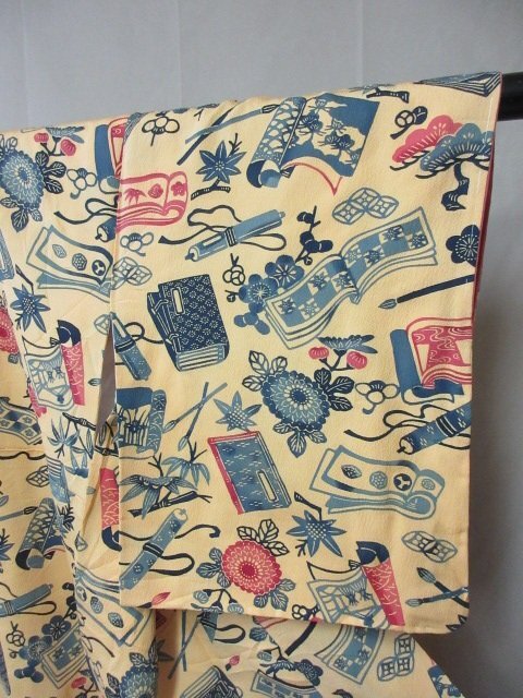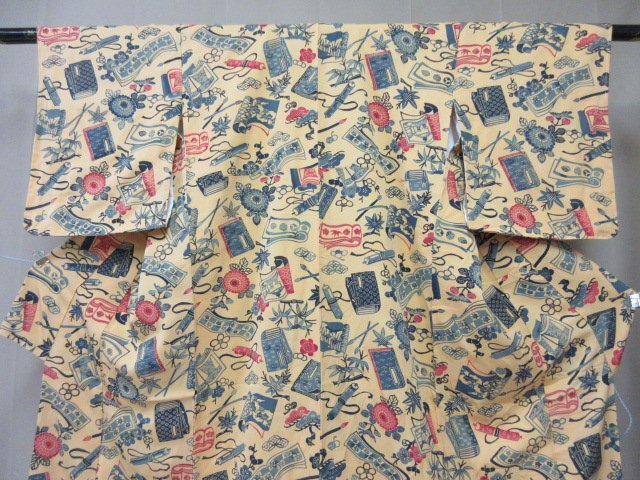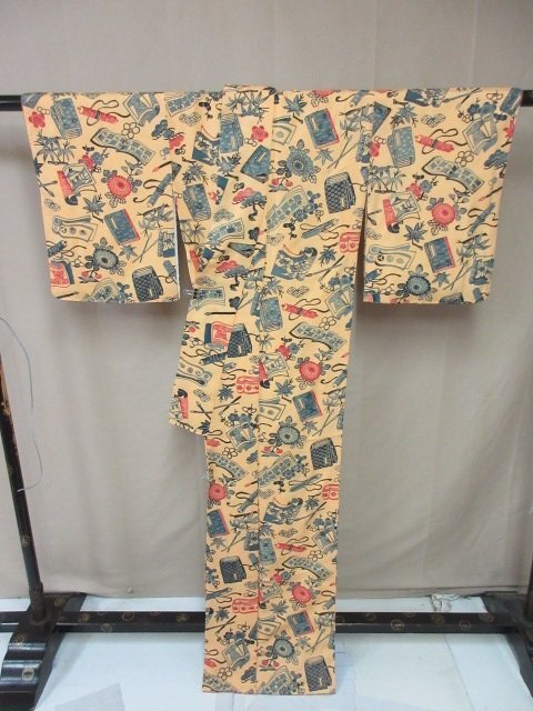 | 商品名 | 1円 良品 小紋 正絹 着物 縮緬 和服 和服 仕立て糸付 冊子 草花 巻物 教本 お洒落 高級 袷 身丈154cm 裄65cm【夢職】★ |
