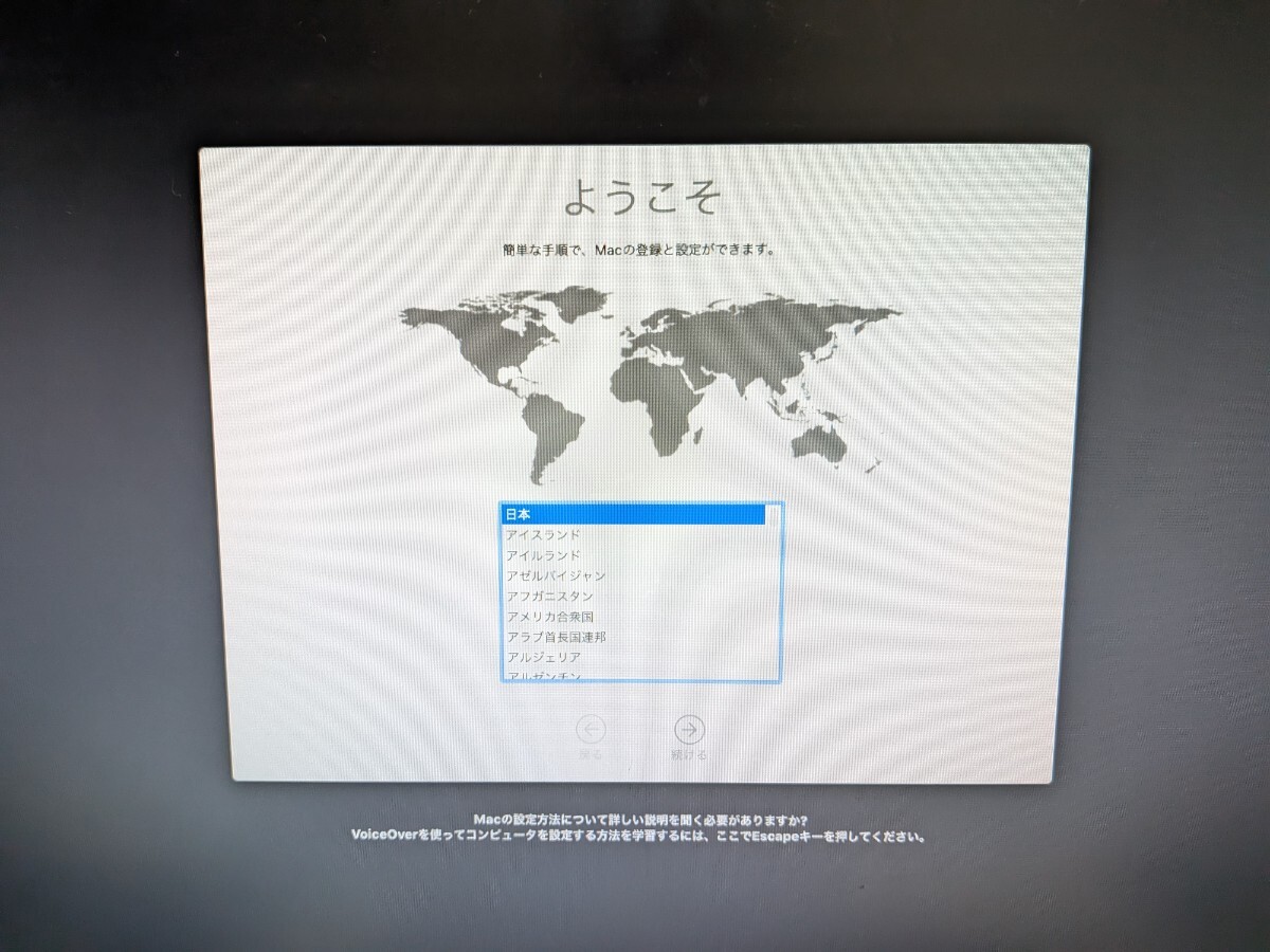電源を入れるとセットアップ画面になります。