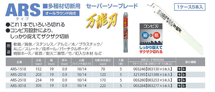 【オススメ】〈モトユキ〉 セーバーソーブレード 多種材切断用 ARS-3010(5本入) JAN:4920350003284