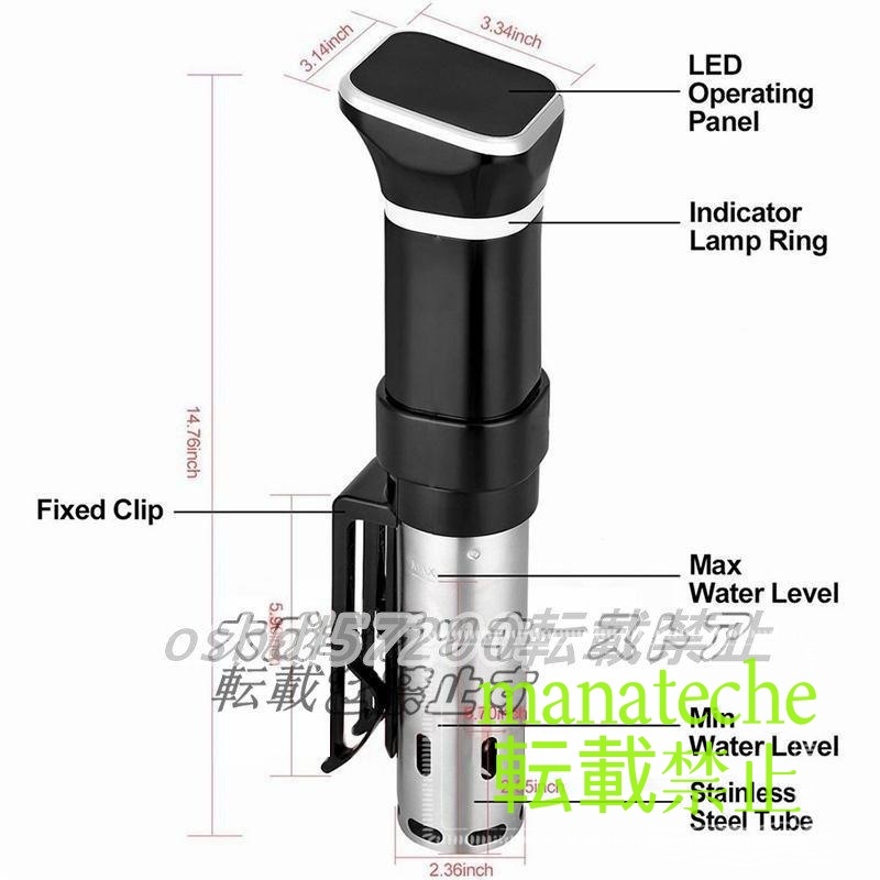 ★状態:新品未使用 1.女性でも楽々、場所に困らないコンパクト?軽量化設計。高さ14.7cmの浅い鍋にも対応可能。使用後の収納も省スペースにキッチンの使いやすい場所に簡単に設置?収納できます。 2.独自の温度制御と流路設計、美味しさの秘訣 高精度のチップを使うので、正確な温度管理が実現。特殊な3D流路設計で、ムラなく、均一に水を循環させます。もちろん、電気代節電、時短と嬉しい静音化も実現。 3.独自のフック式クリップ設計、両手ではなくて片手で簡単に着脱でき、嬉しい使いやすさ。 4.本体は安心の「IPX7防水仕様」なので、料理時の蒸気が多くても、故障する心配なく、快適にご使用いただけます。 5. 取り外せて洗える設計で、お手入れもらくらくで、毎日使っても、面倒なことはありません。ステンレスカバーを外して、水だけで簡単に掃除できます。 ■海外輸入商品