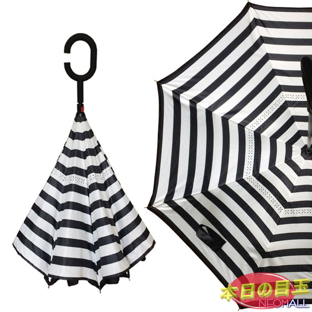 1円~ ☆ 逆折り式傘 【630-A】日傘 雨傘 自動広ける 手離れC型手元 自立可能 二重 ビジネス用 車用 男女晴雨兼用 通勤 通学 柄 模様
