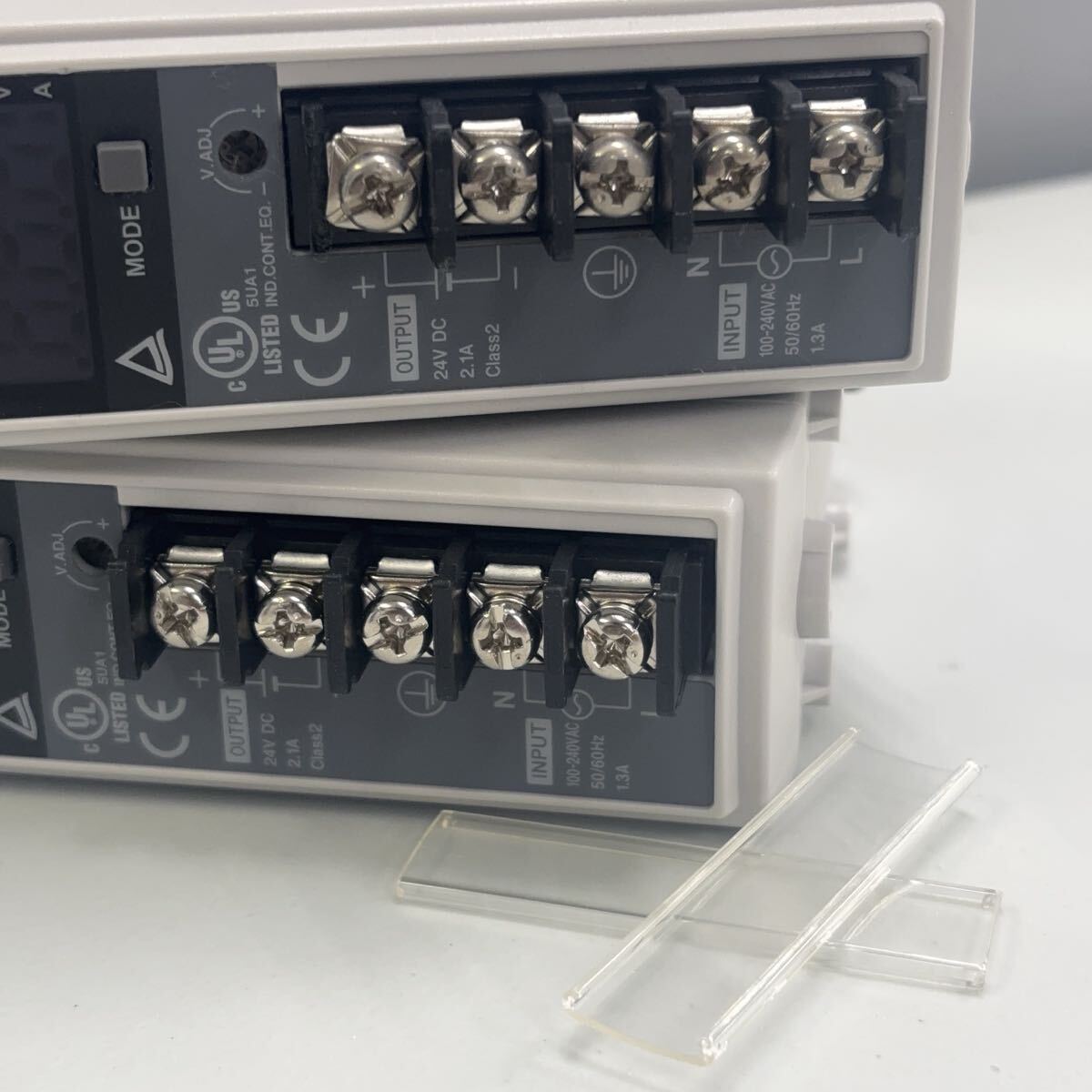中古品です。2個のうち1個に、1番上の端子部分のプラスチックパーツ(絶縁仕切り)の一部が外れている箇所があります(画像参照)。通電やネジ固定には問題ありません。その他は使用に伴うスレ程度で、目立つキズや破損はなく、全体的に良好な状態です。どちらも取り外し前まで正常に動作していました。