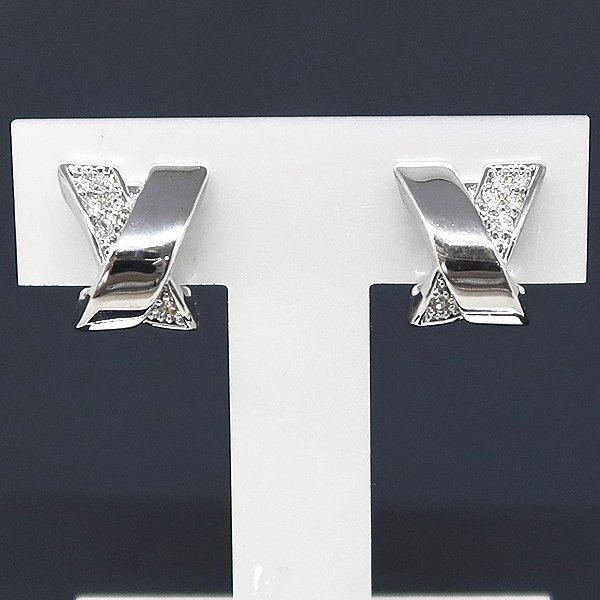 DKG★送料無料 BVA870★ ラインストーン X デザイン イヤリング ネジバネ式 エックス クロス デザインイヤリング