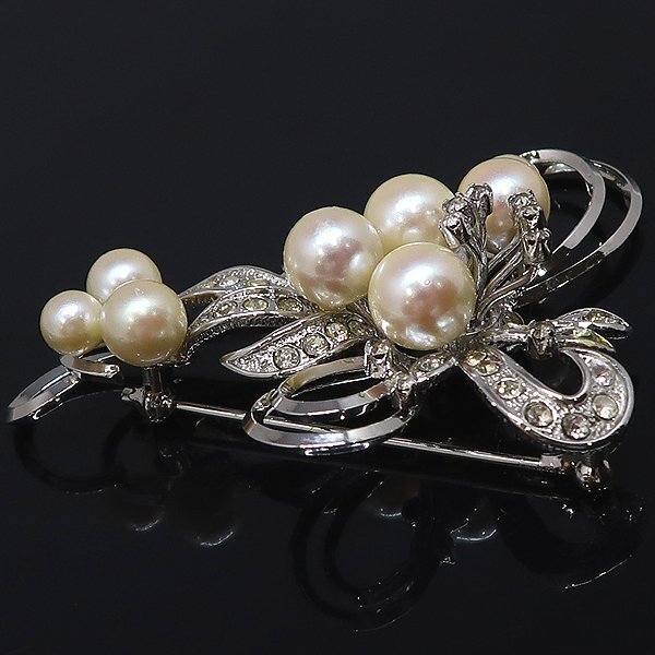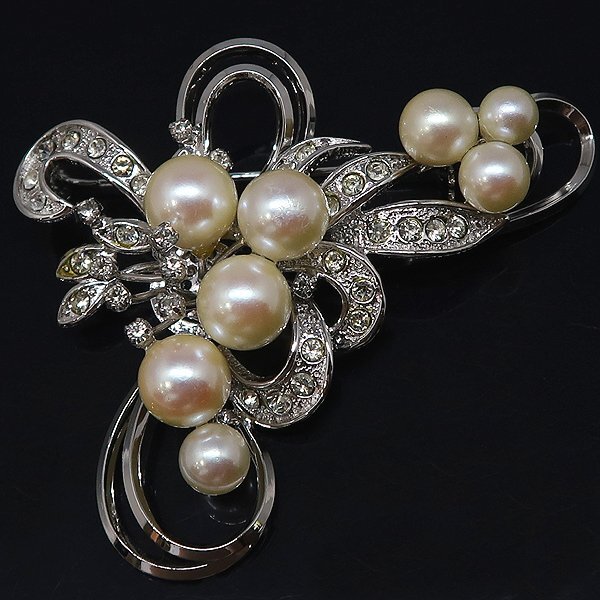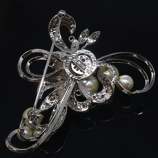 DKG★送料無料 BVA500★ SILVER シルバー ラインストーン フェイクパール ブローチ