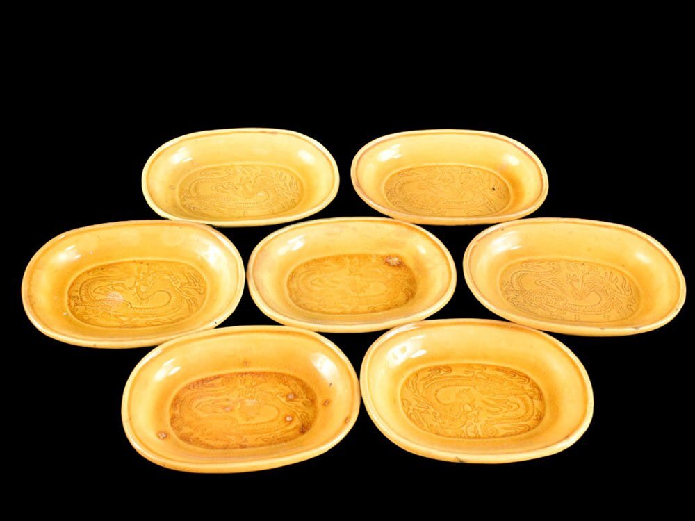 | 商品名 | 【雲】某収集家買取品 珉平焼 黄交趾雲龍紋小皿 7客 7.5×9.5×1.5cm 古美術品(小判皿淡路懐石料理道具)BY5706 LTDbhy |