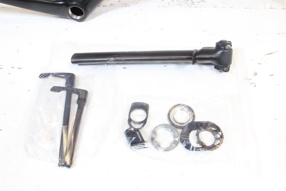 | 仕様 | 年式:2021 フレーム:カーボン フォーク:カーボン BB:JIS FDマウント:直付け シートポスト:専用 コラム径:OS コラム残長:175mm OLD:100x12mm/142x12mm thru サイズ:54 トップチューブ長(C-C):541mm ※ホリゾンタル換算値 シートチューブ長(C-T):475mm 適応身長:170cm~175cm 程度 実測重量(フレーム/フォーク):820g / 380g ※掲載画像状態 |