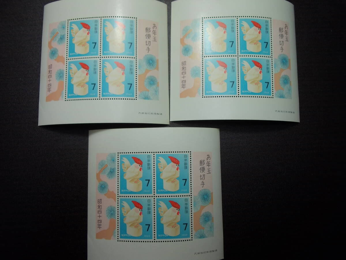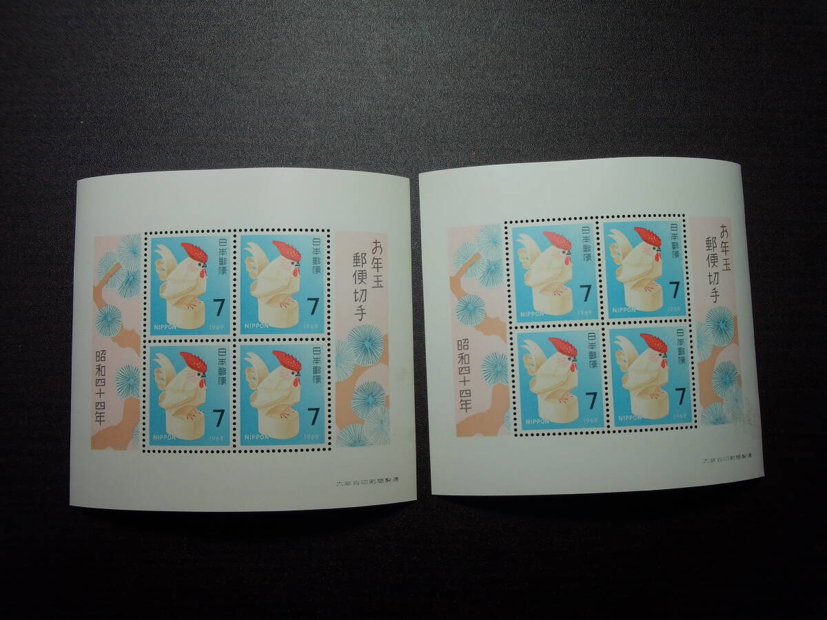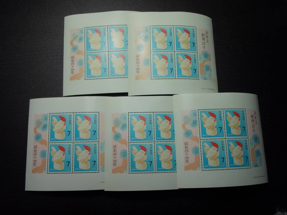 年賀切手  ニワトリ  5シート1セット  極美品に近い美品  カタログ値1250円  昭和44年用
