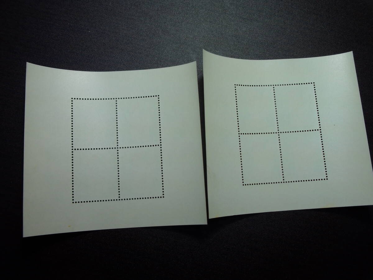 この頃の切手は丸まりやすいので目打ち離れ、折れをおこしやすいです。また、この頃の切手はグラビア印刷の特徴としてヒビ